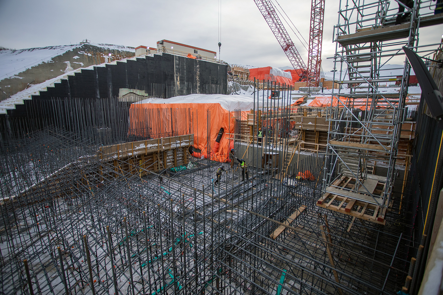 Rebar installation under way at the lower spillway. (November 2020)