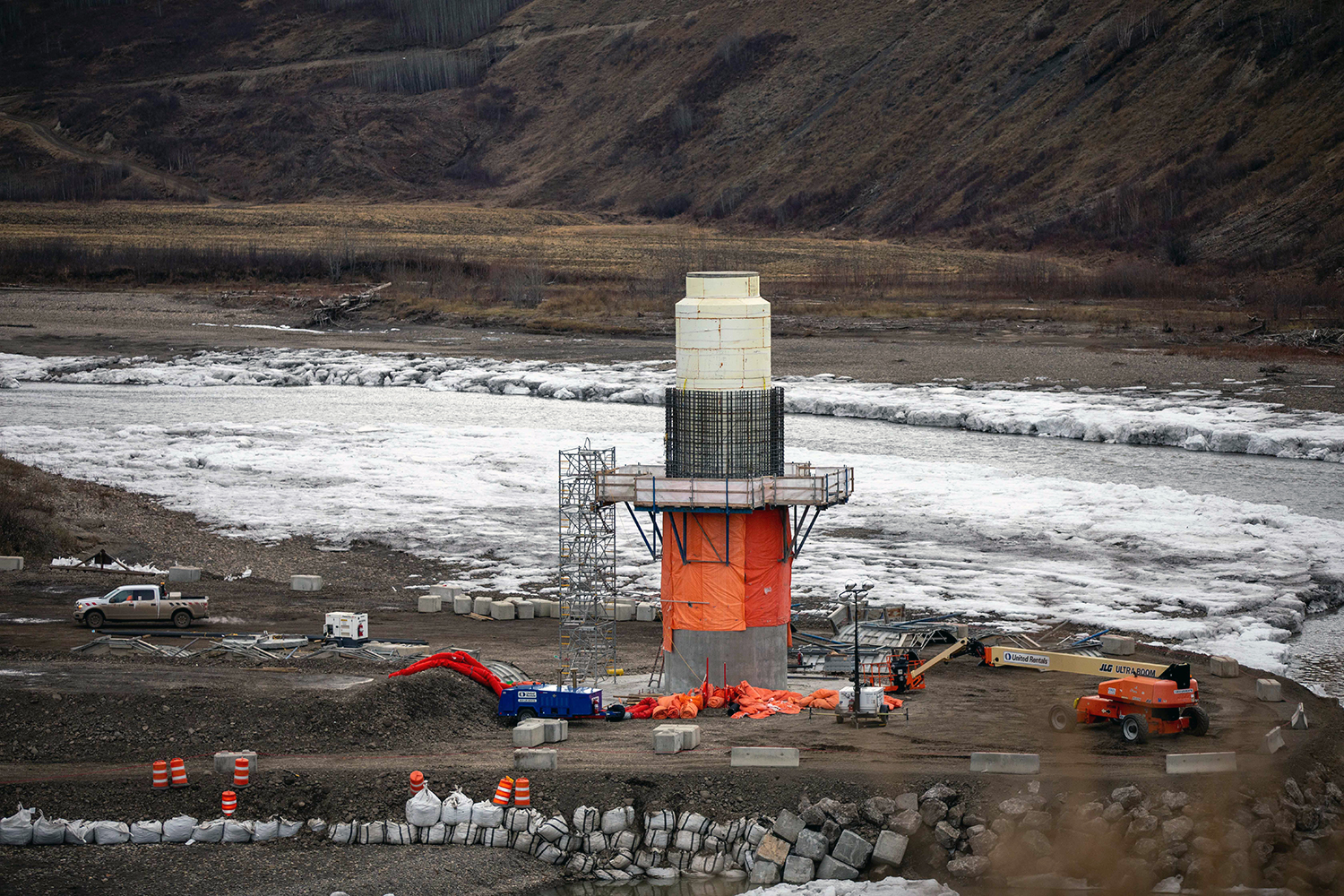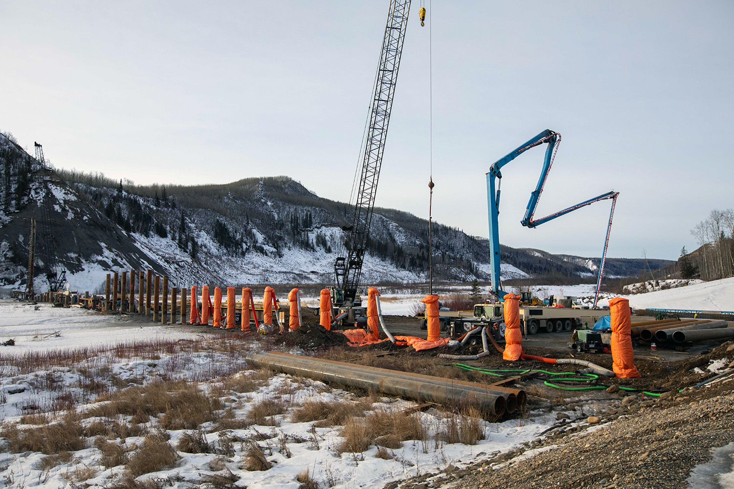 Five of the 12 piers for the new Halfway River bridge (on Highway 29) have been completed. (November 2020)