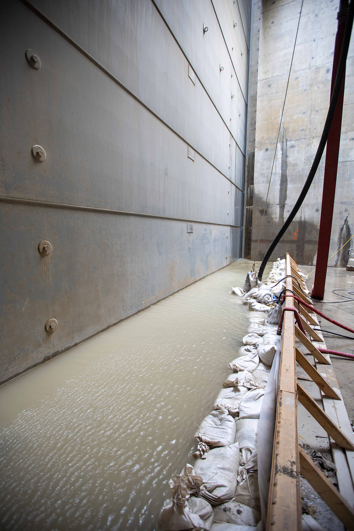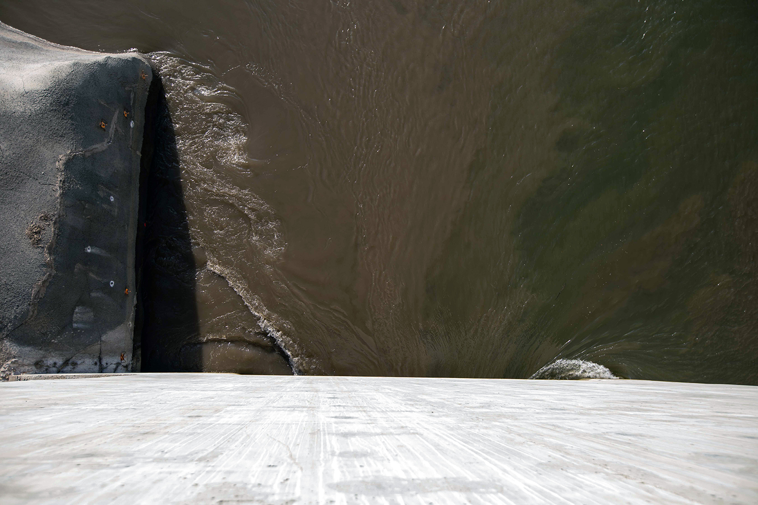 Monitoring the stoplog leakage rate at the diversion tunnel 2 outlet. A stoplog is a type of bulkhead gate that, when used in sets, acts as a temporary closure of openings on various types of structures. (August 2020)