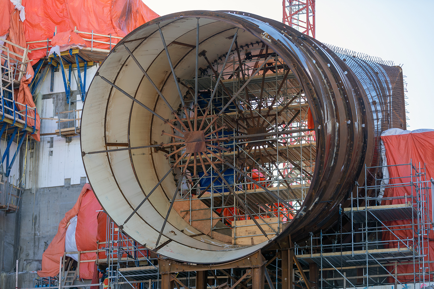 The draft-tube elbow ready to be installed. The Site C generating station will have six penstocks to direct water into its six turbine-and generator units. (October 2020)