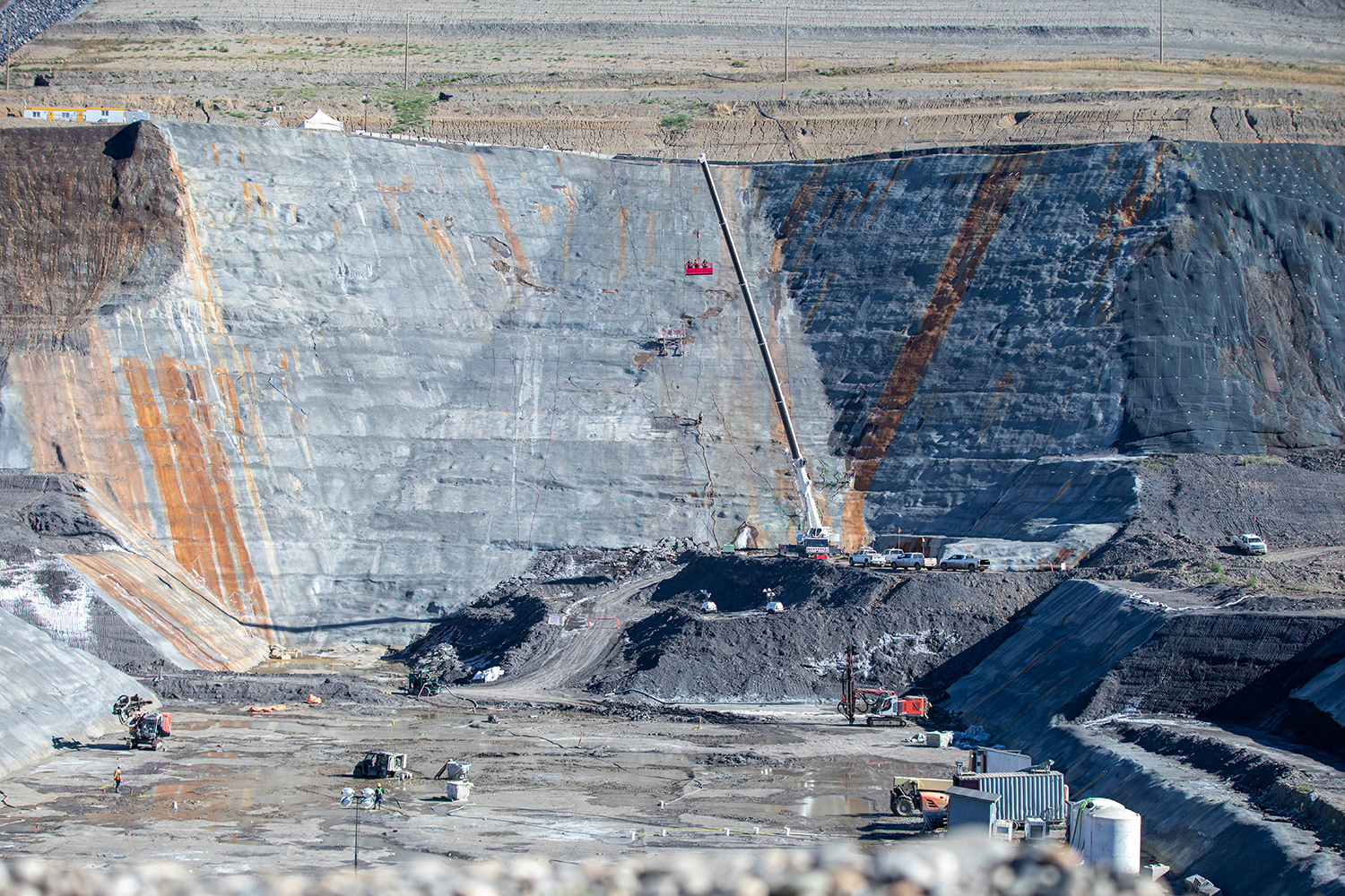 Dam core materials from the 85th Avenue Industrial Lands are transported by a conveyor system to the dam site. (August 2020)