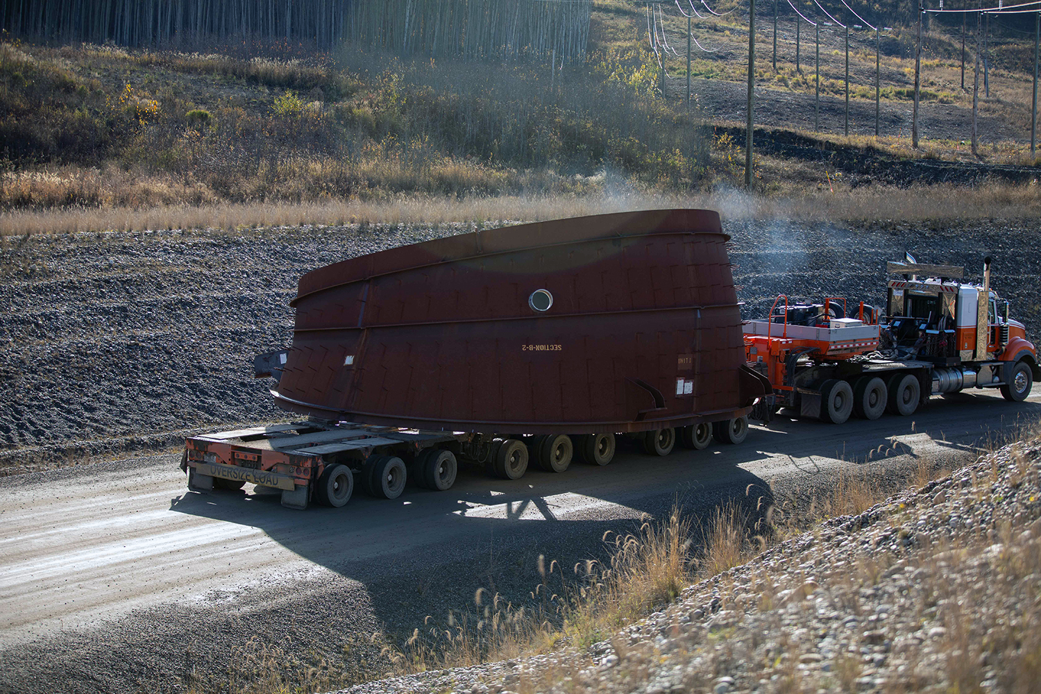 The transport pod is loaded onto a truck to take fish upstream of the dam site to be released back into the Peace River and its tributaries. (October 2020)
