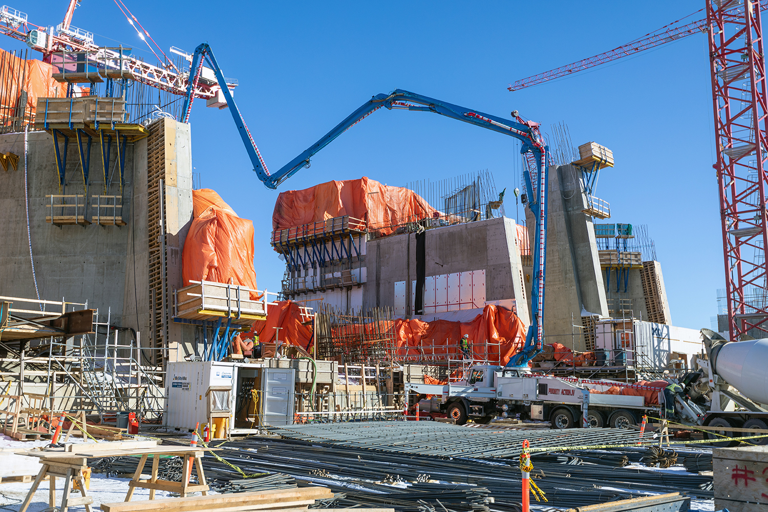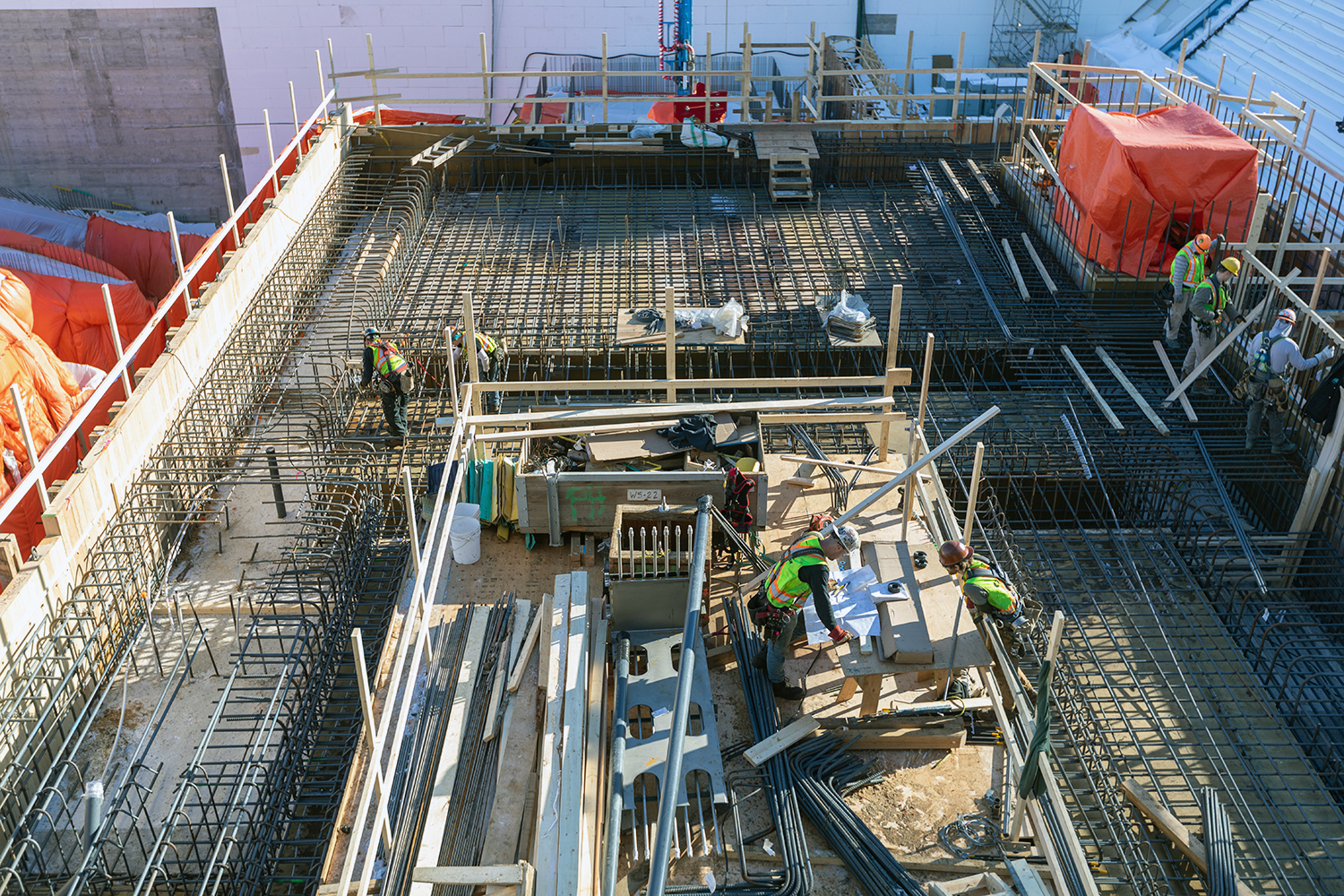 Rebar work in progress in preparation to pour concrete at Unit 6. (February 2020)