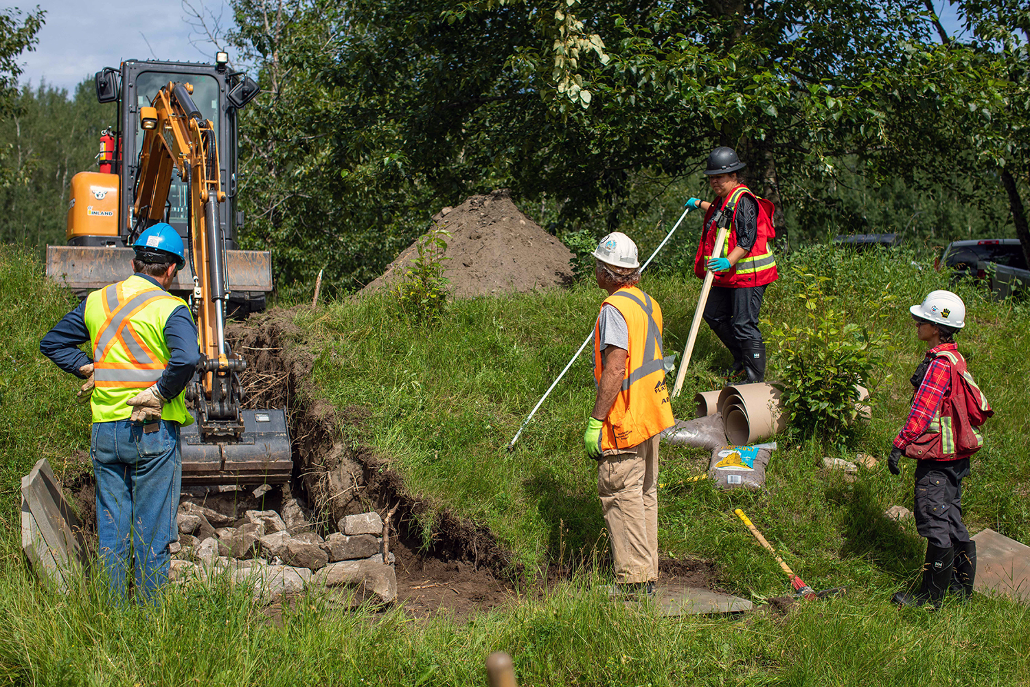 Artificial snake dens are built with rocks and soil to reduce the effects of the Site C project on garter snakes. (July 2020)