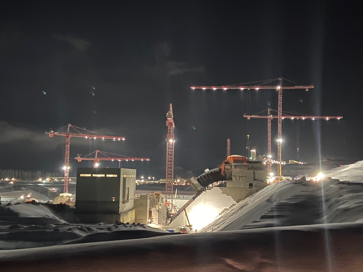 As a 24/7 operation, work at Site C continues through the night (March 2020)