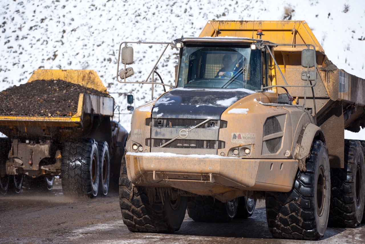 Trucks hauling material. (March 2016)