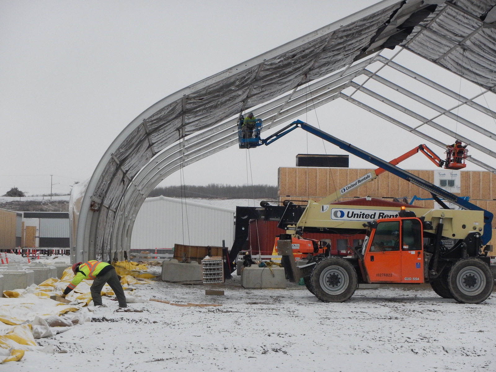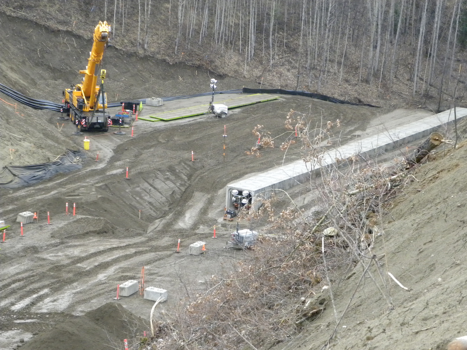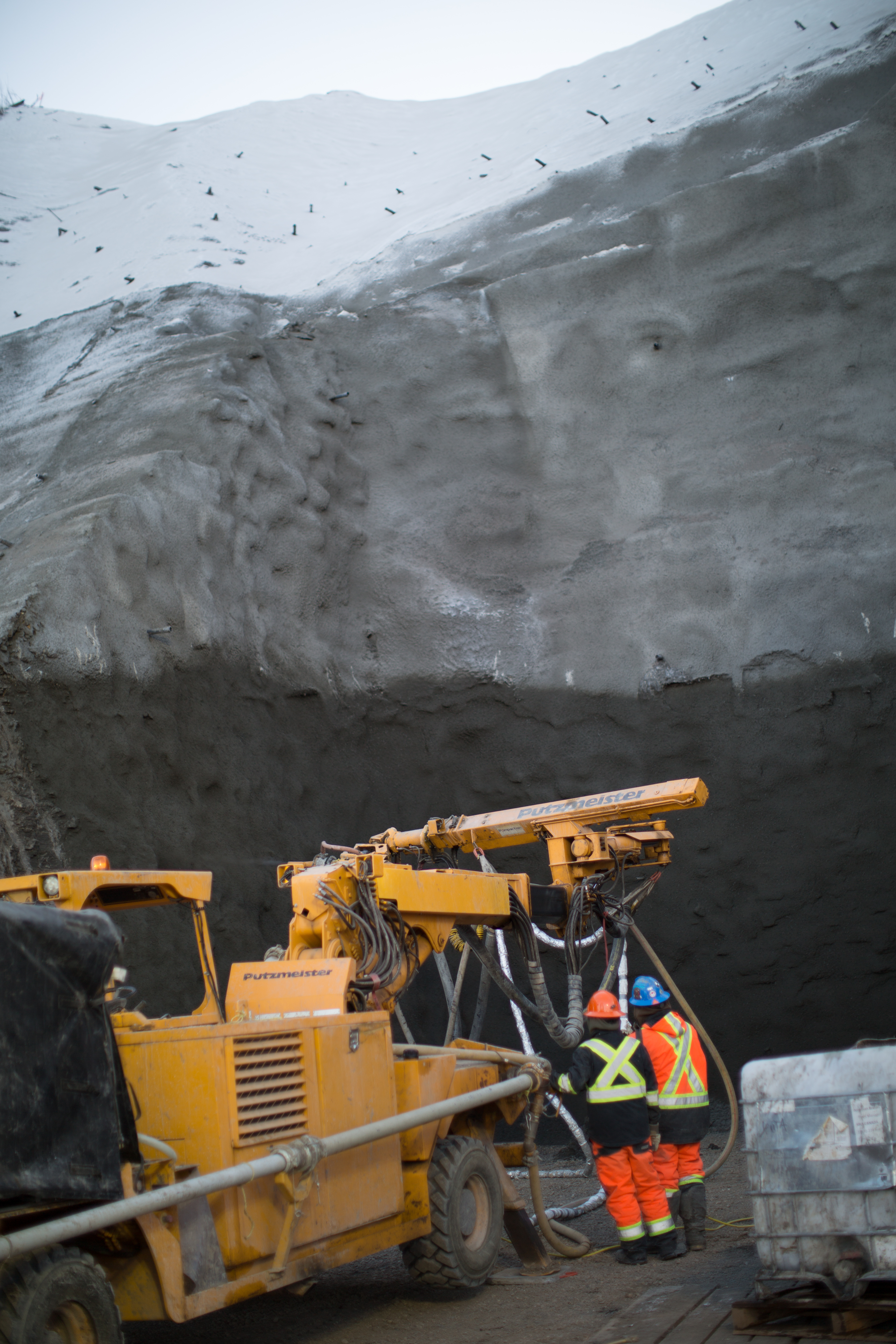 Crews preparing to apply shotcrete to the drainage tunnel on the south bank. (December 2016)