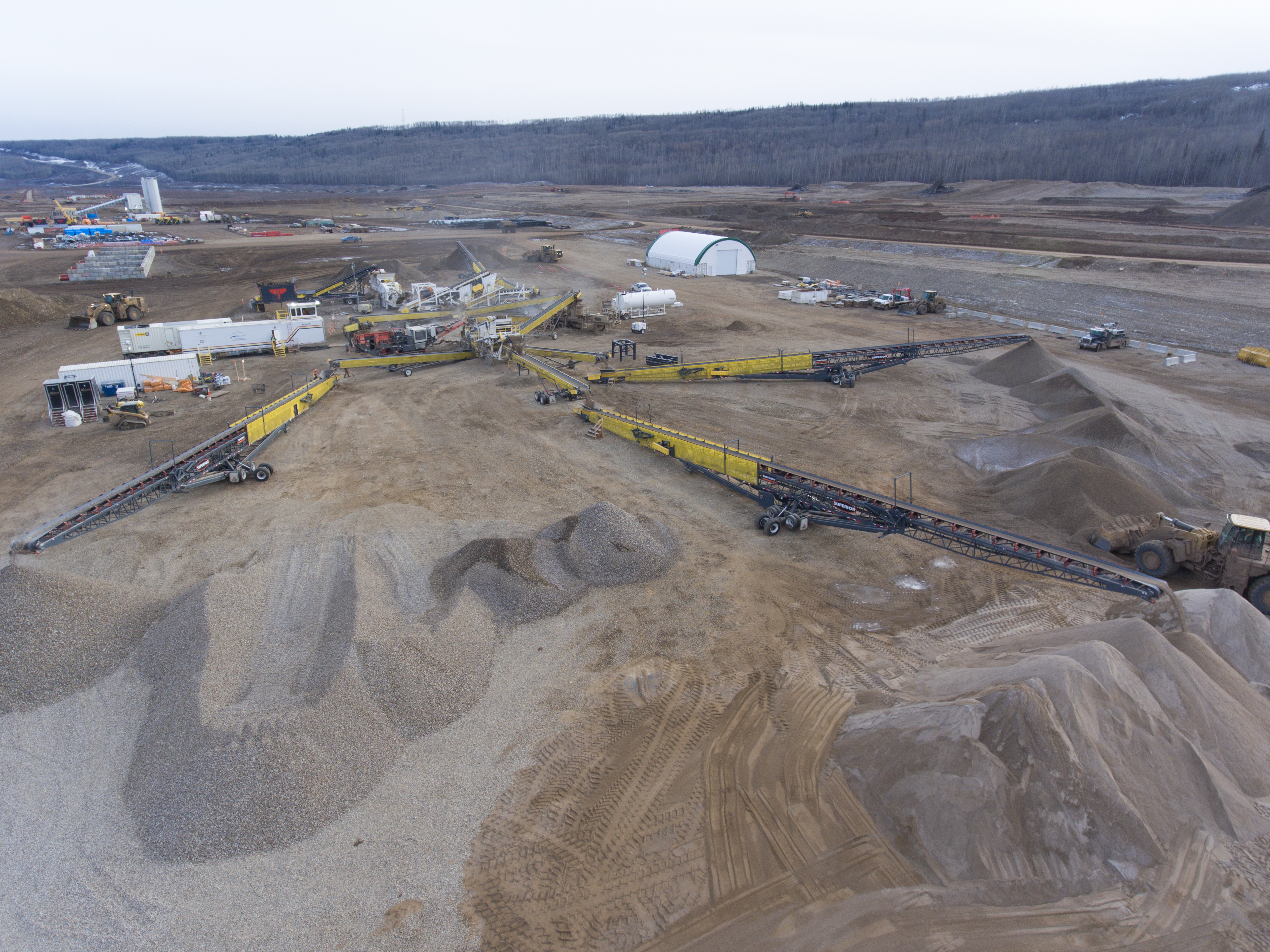 Aggregate production area. This aggregate will be used to produce roller-compacted concrete. (November 2016)