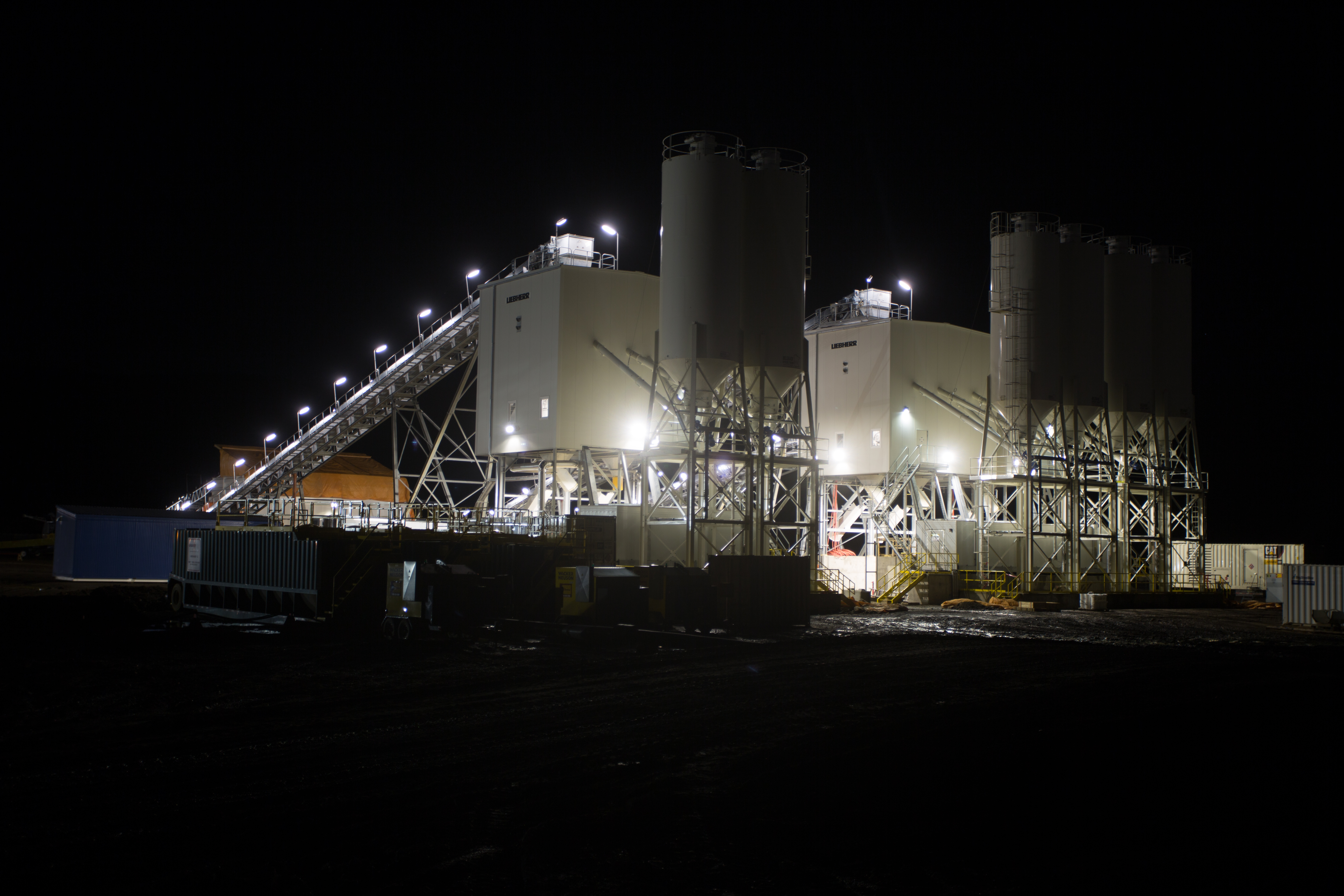 Concrete batch plants at night. (November 2016)
