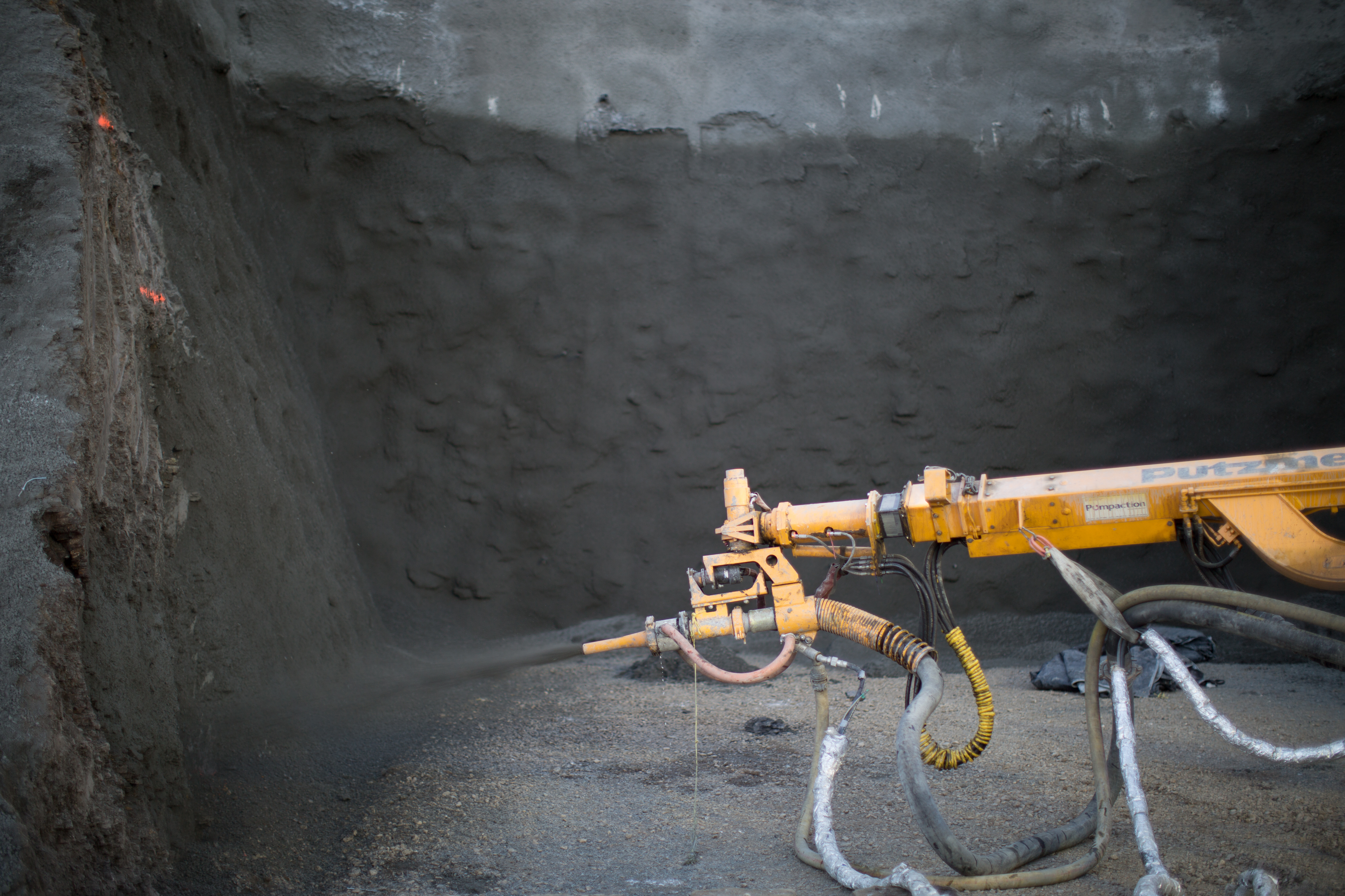 Shotcrete application at the drainage tunnel on the south bank. (December 2016)