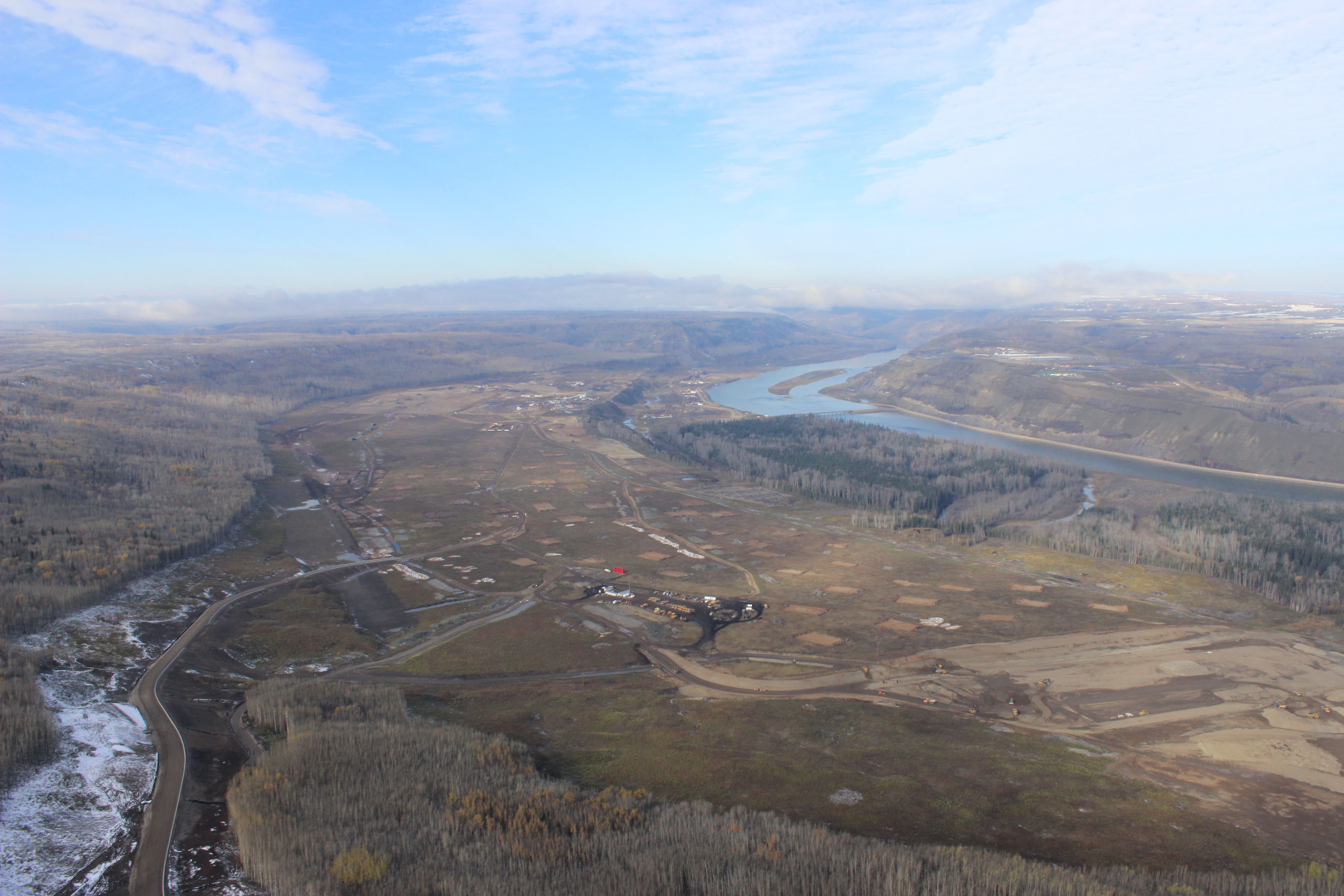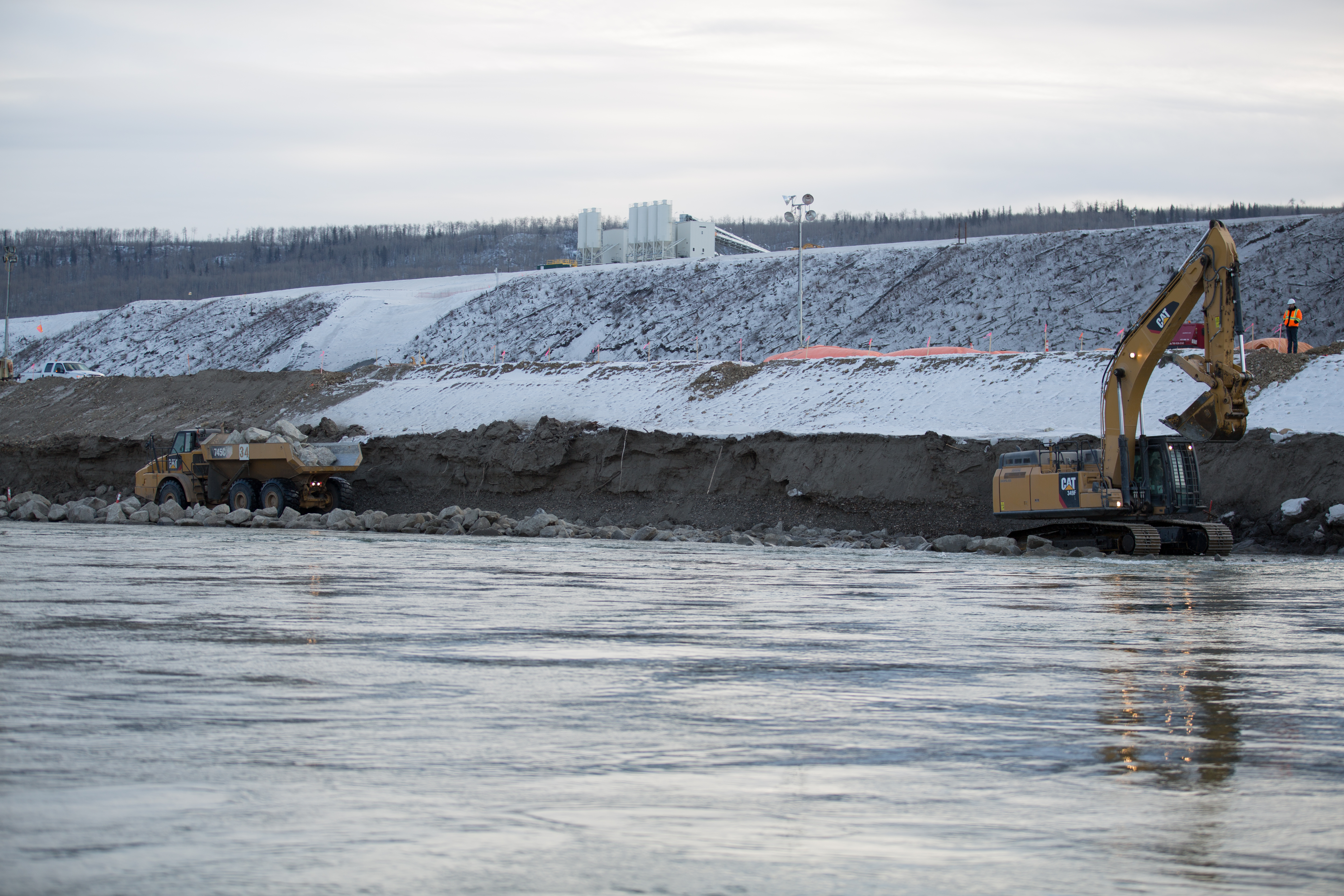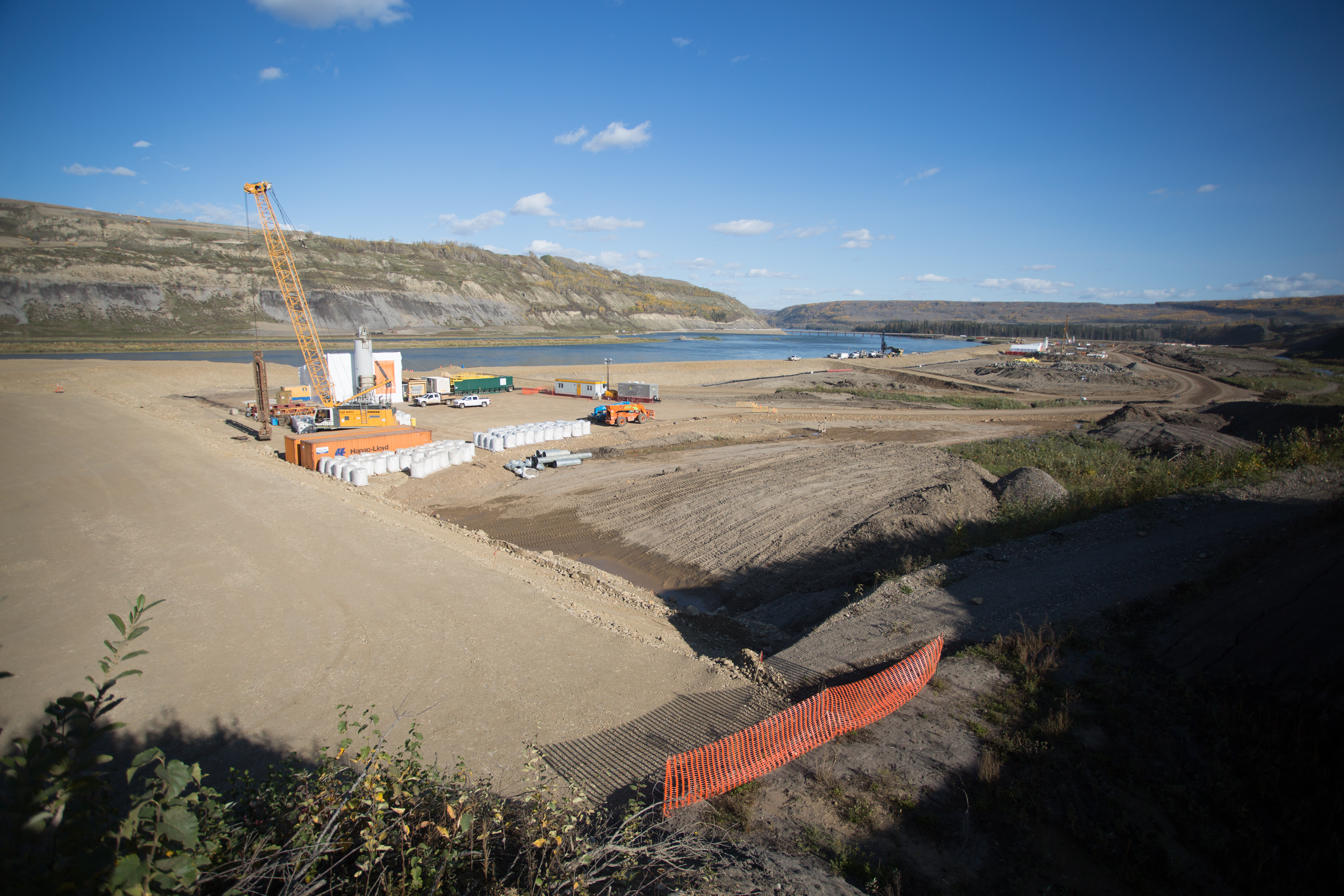 Peace River Hydro Partners continue preparatory work and equipment mobilization on the south bank. (May 2016)
