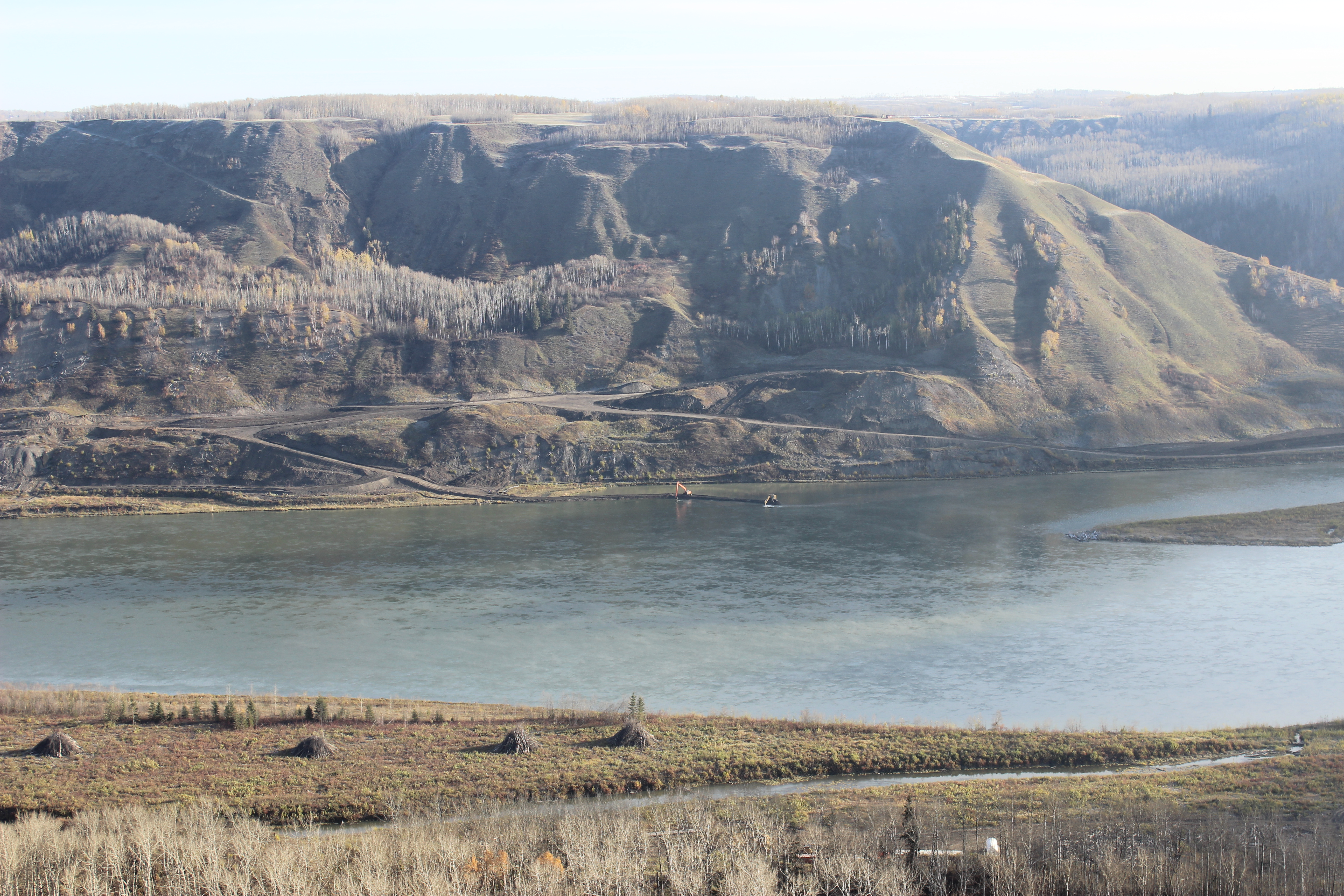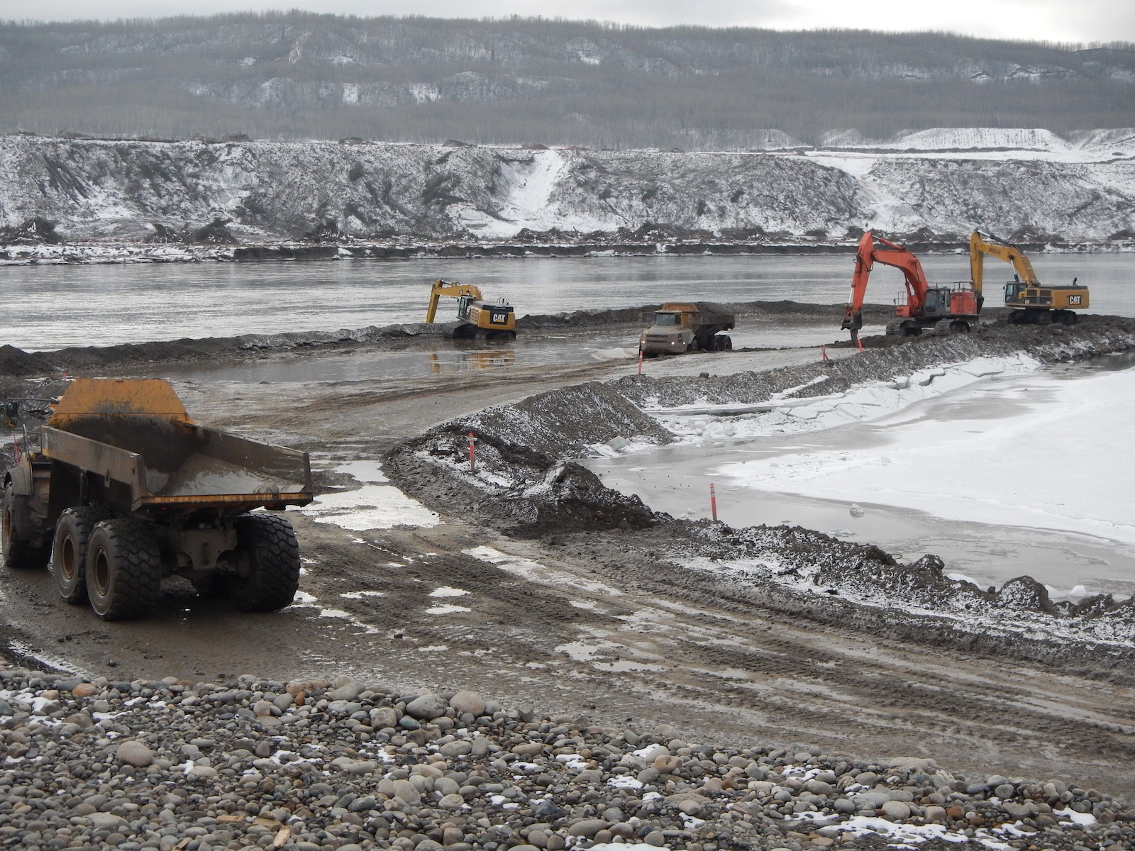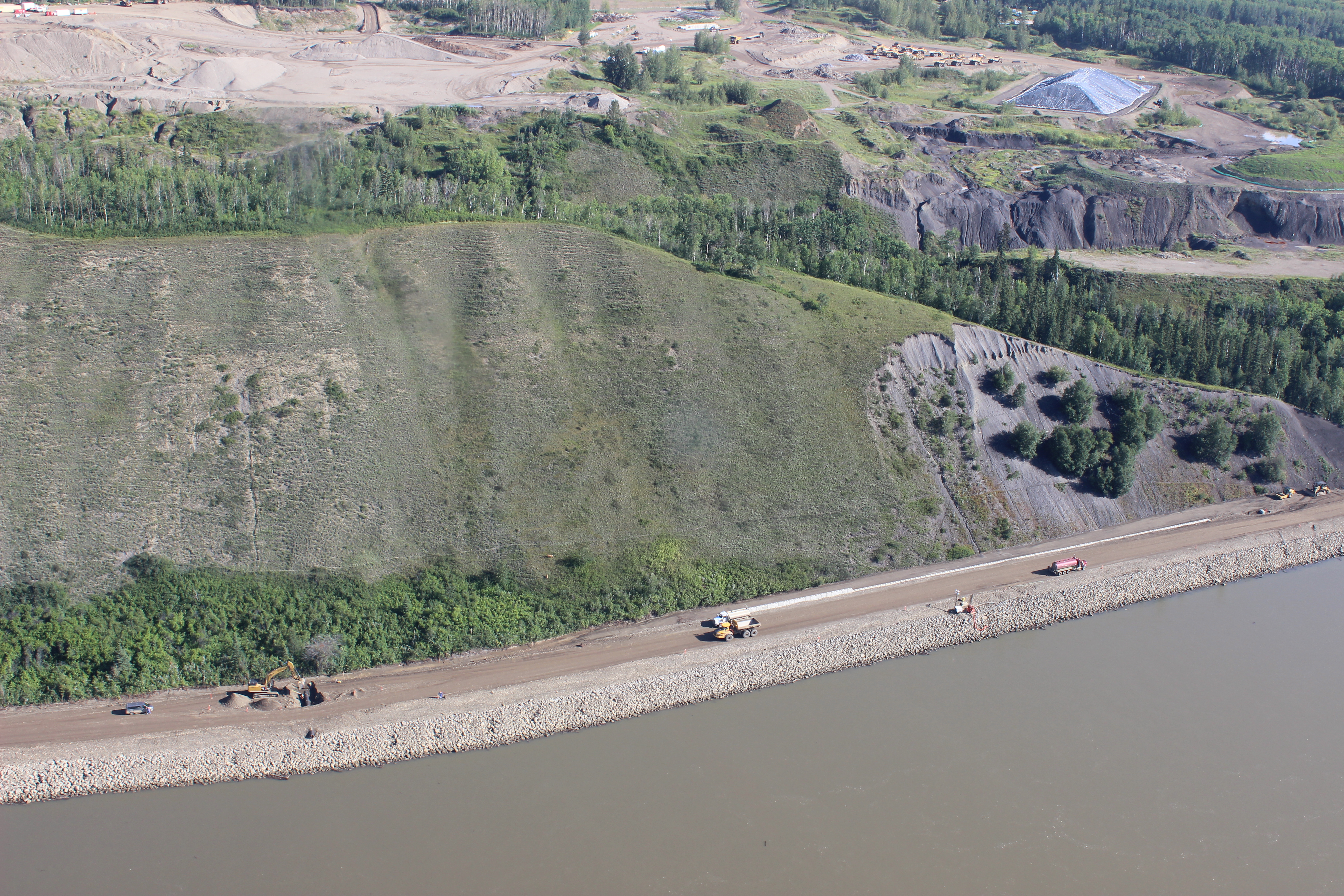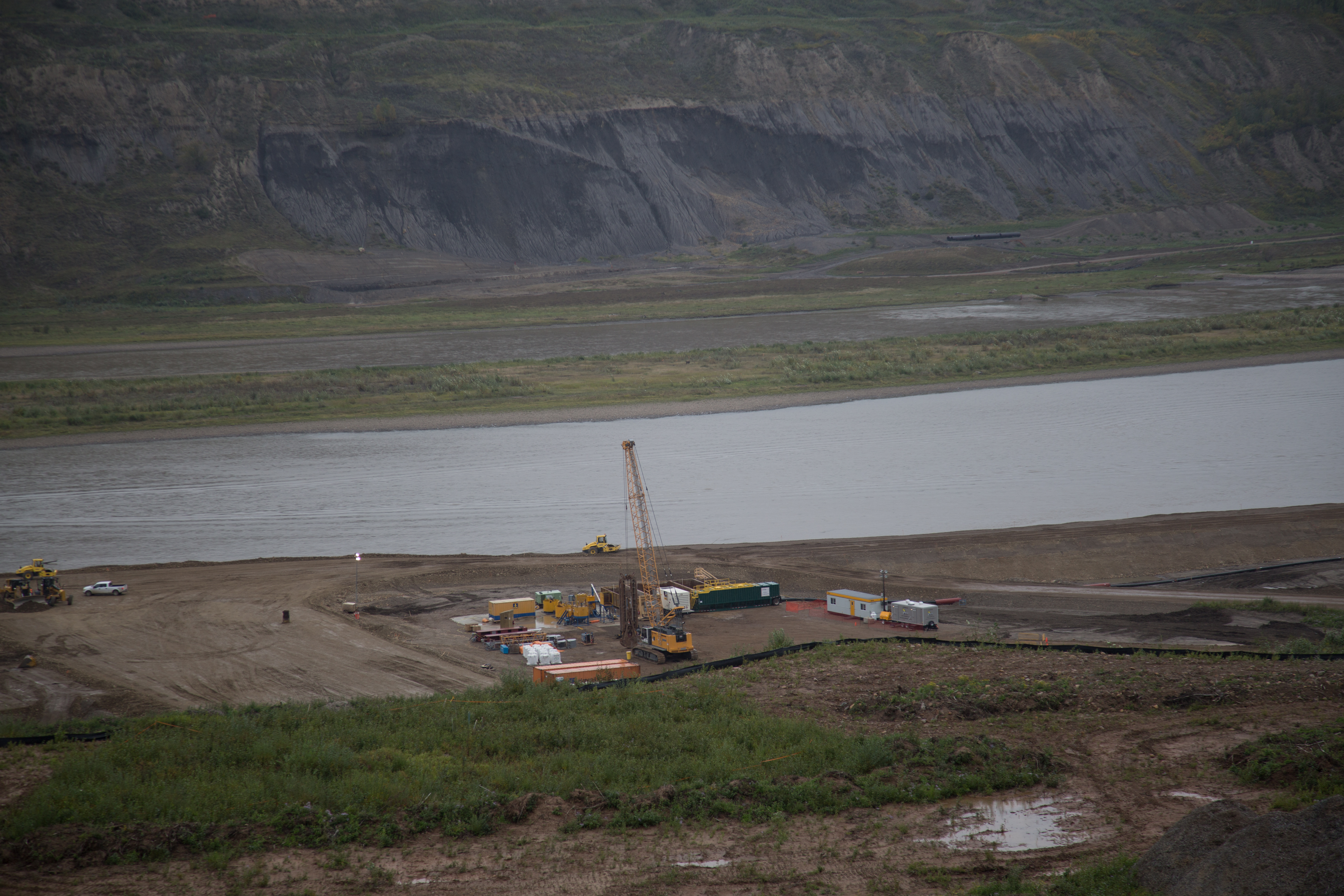 Peace River Hydro Partners continue preparatory work and equipment mobilization on the south bank. (May 2016)