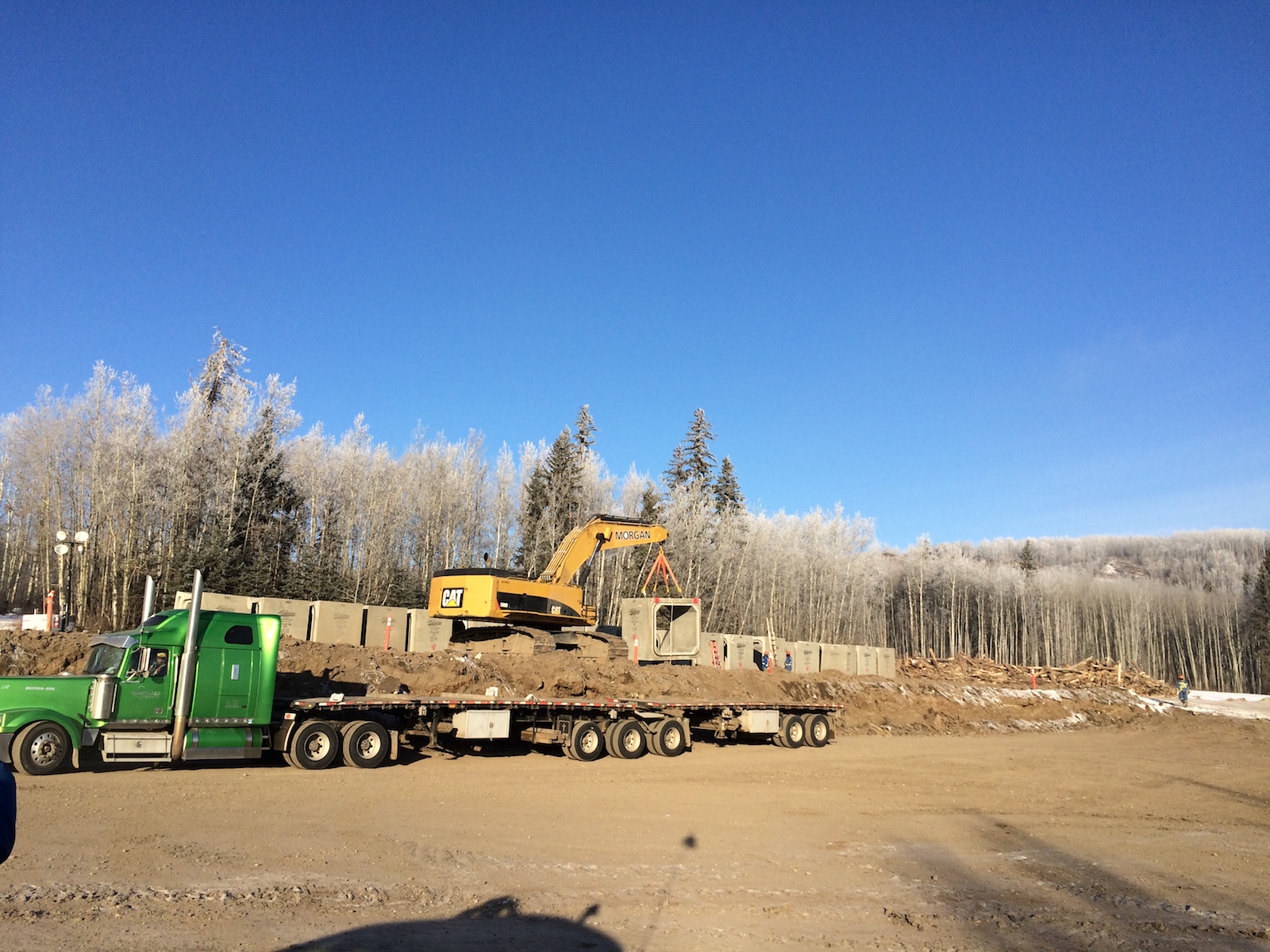 Excavator unloading culvert sections. (February 2016)