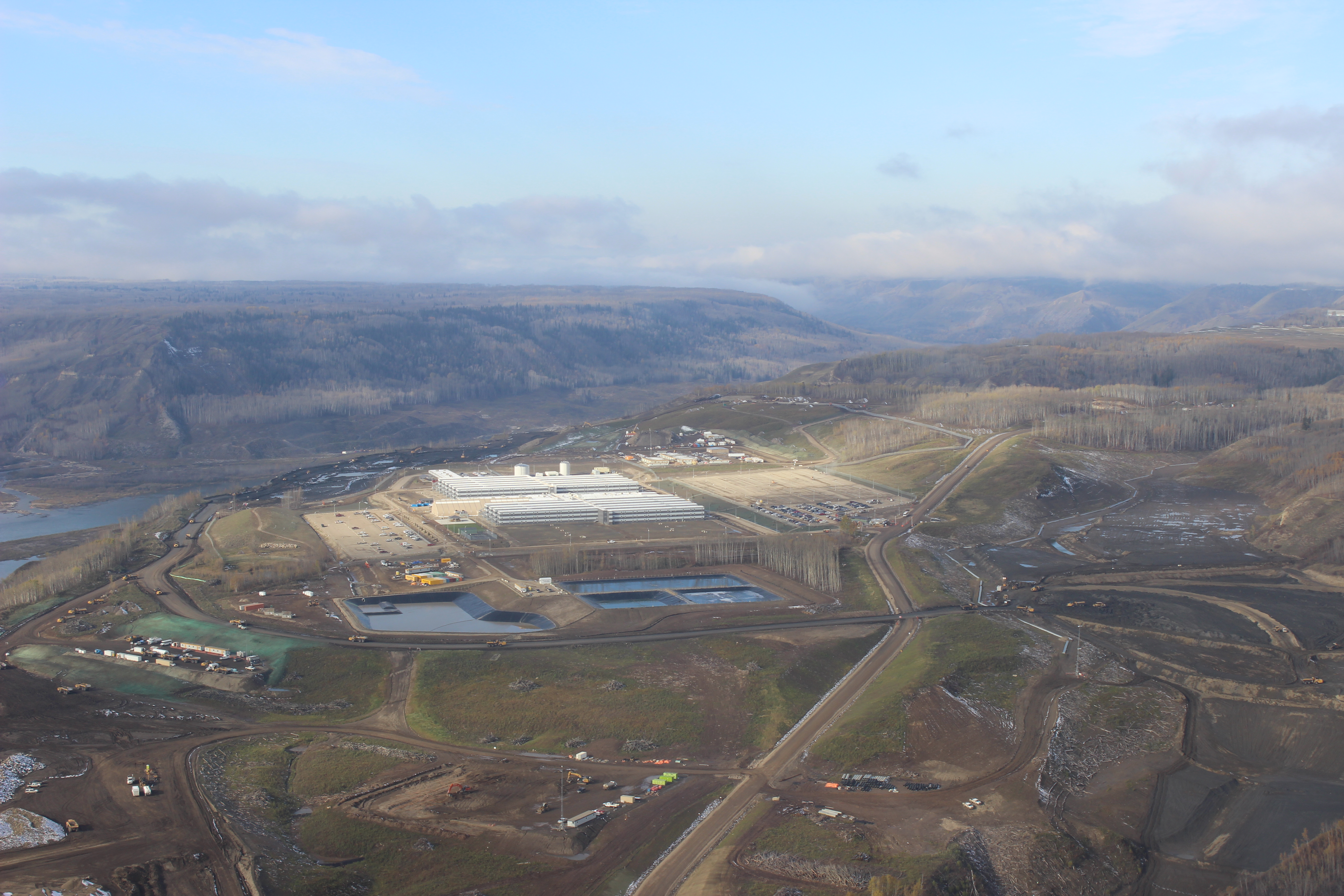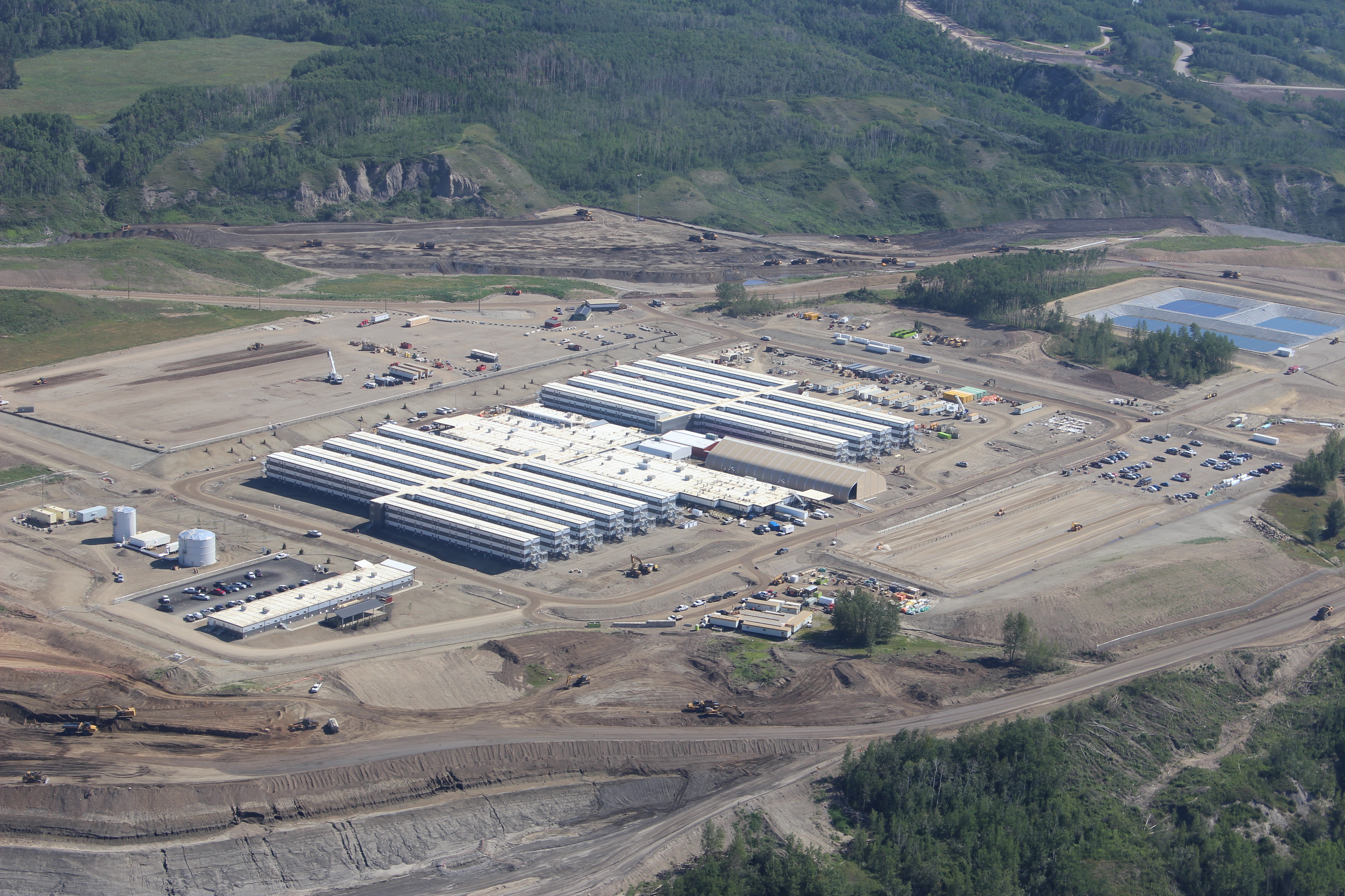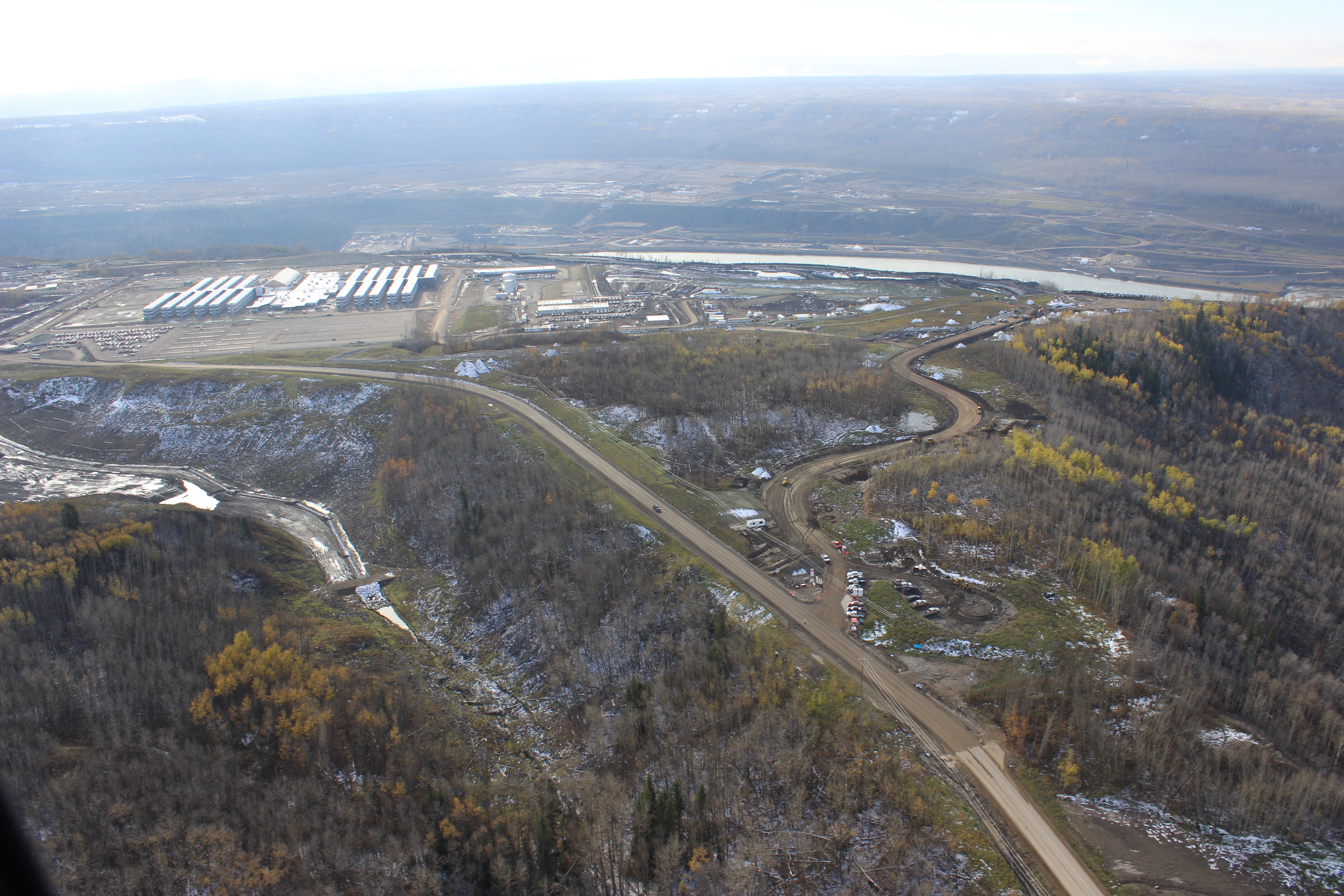 Aerial view of north bank of dam site showing the worker accommodation lodge. (July 2016)