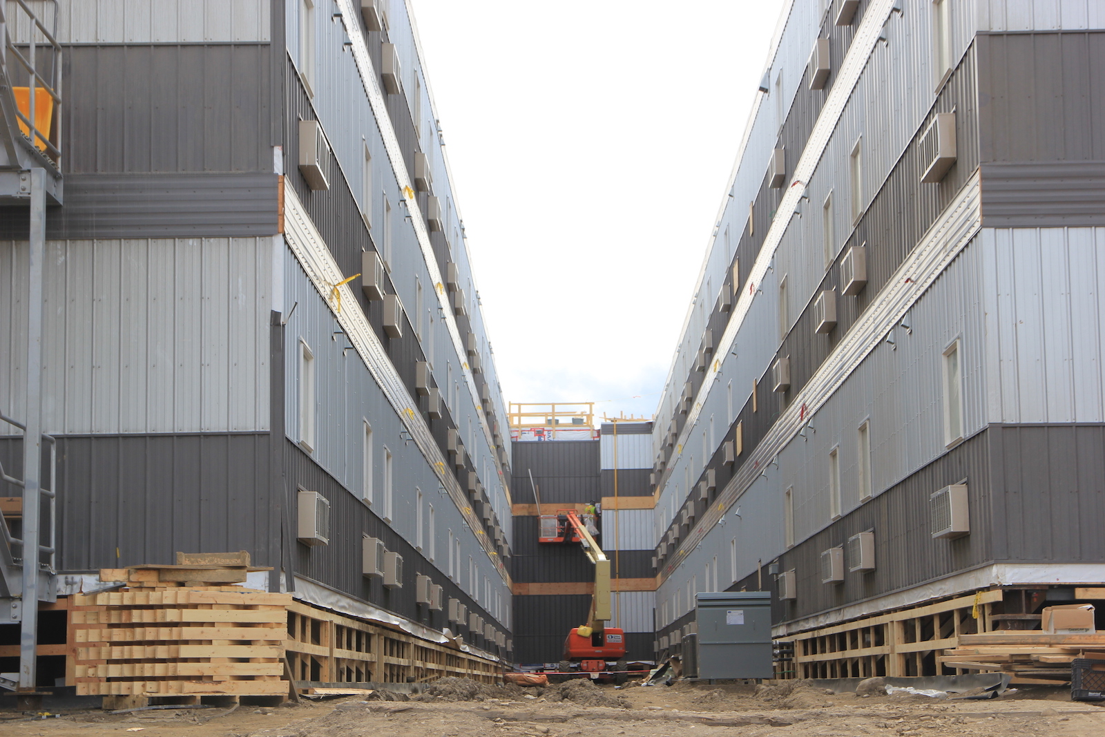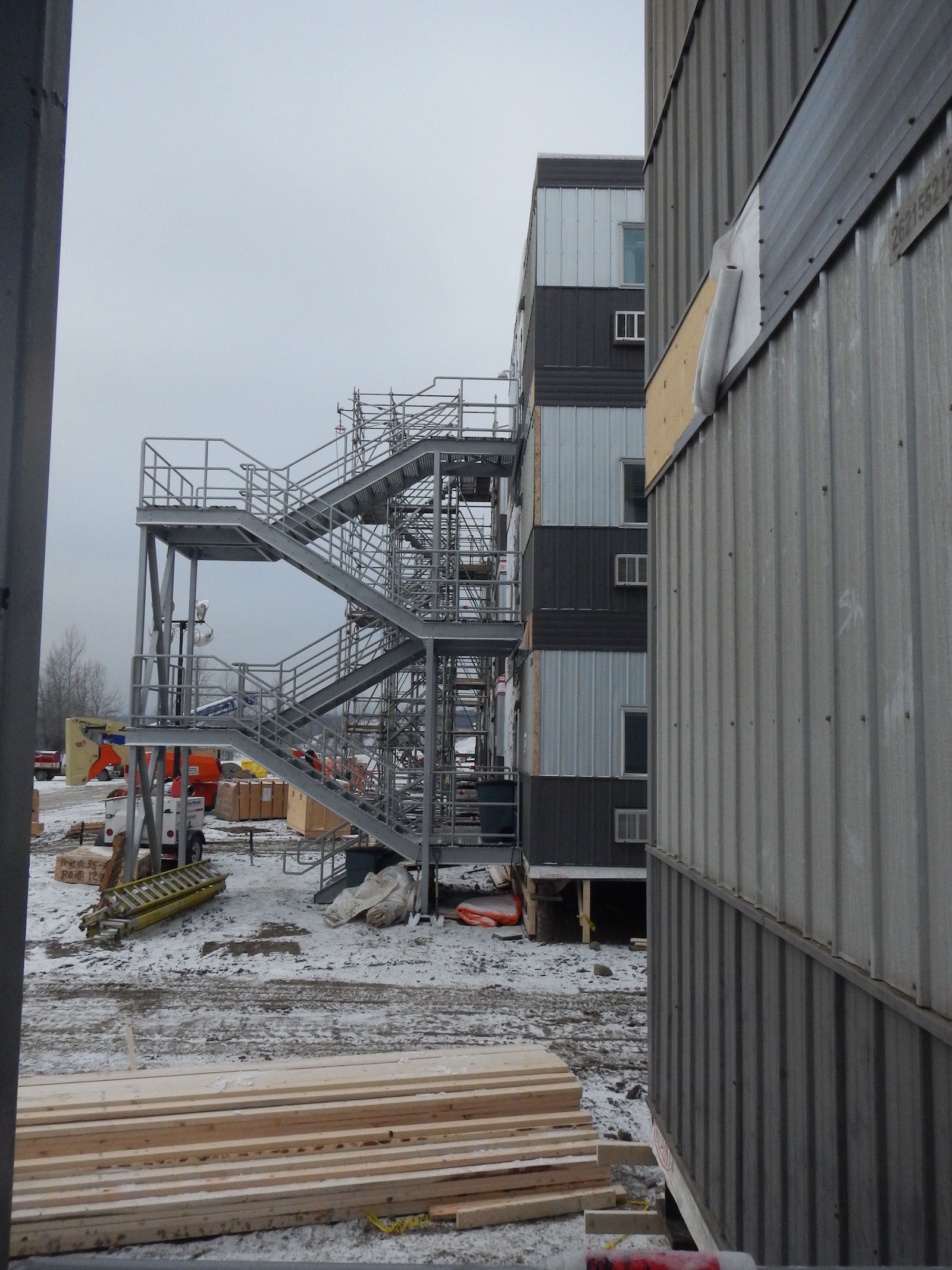Three tiers of end block of worker accommodation lodge. (February 2016)