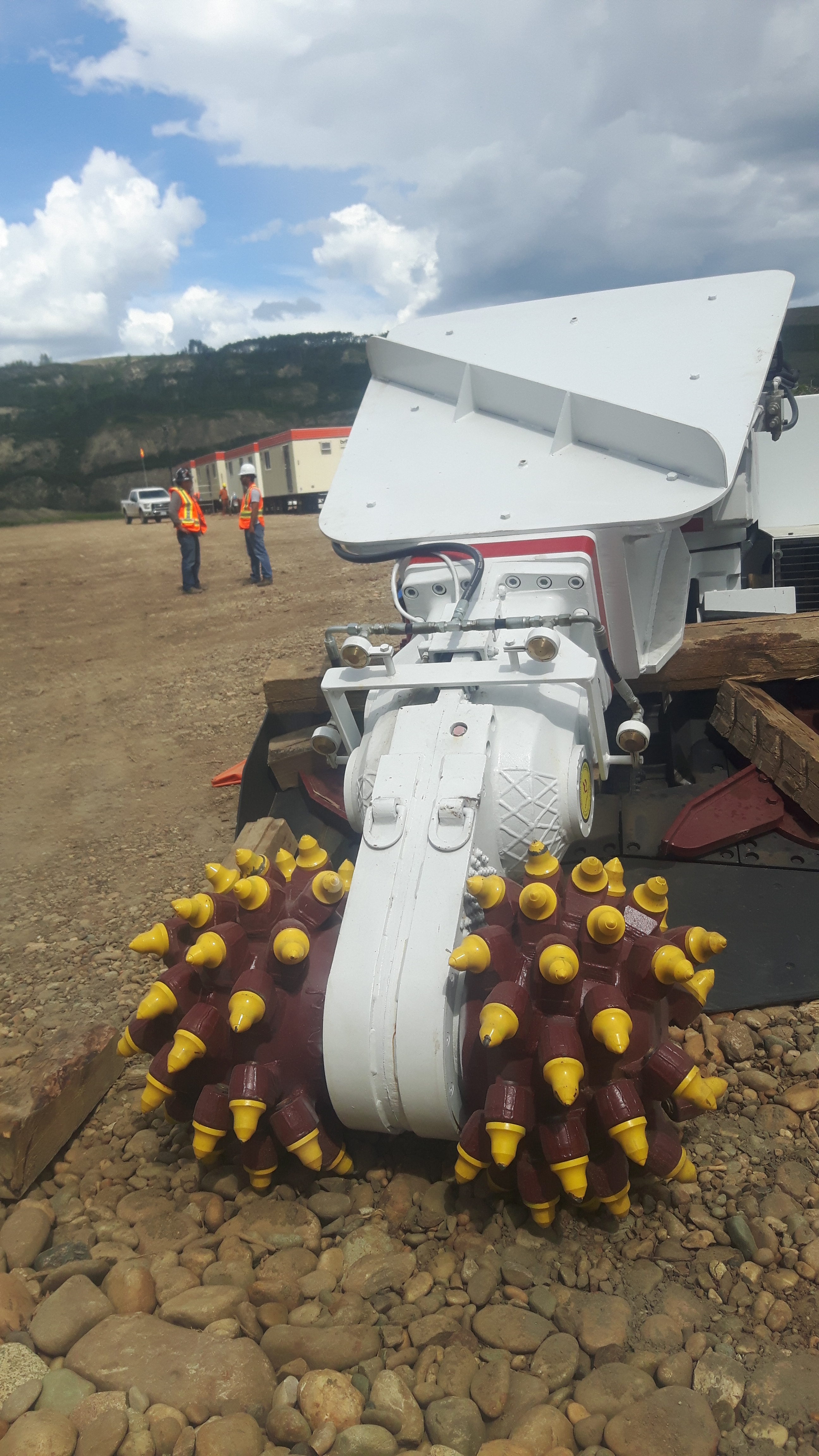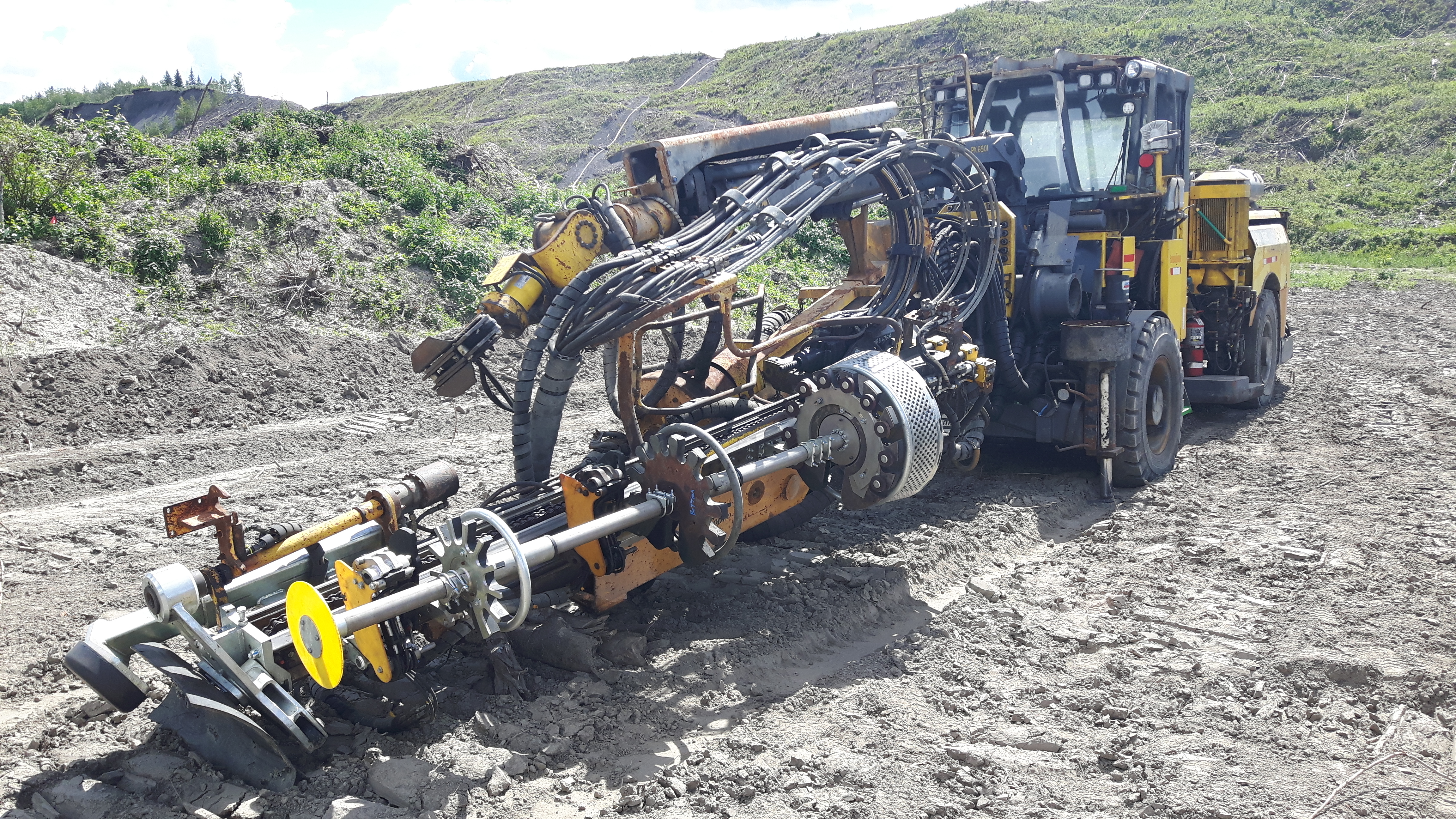 Peace River Hydro Partners continue equipment mobilization including this Antraquip AQ150 Roadheader. (July 2016)