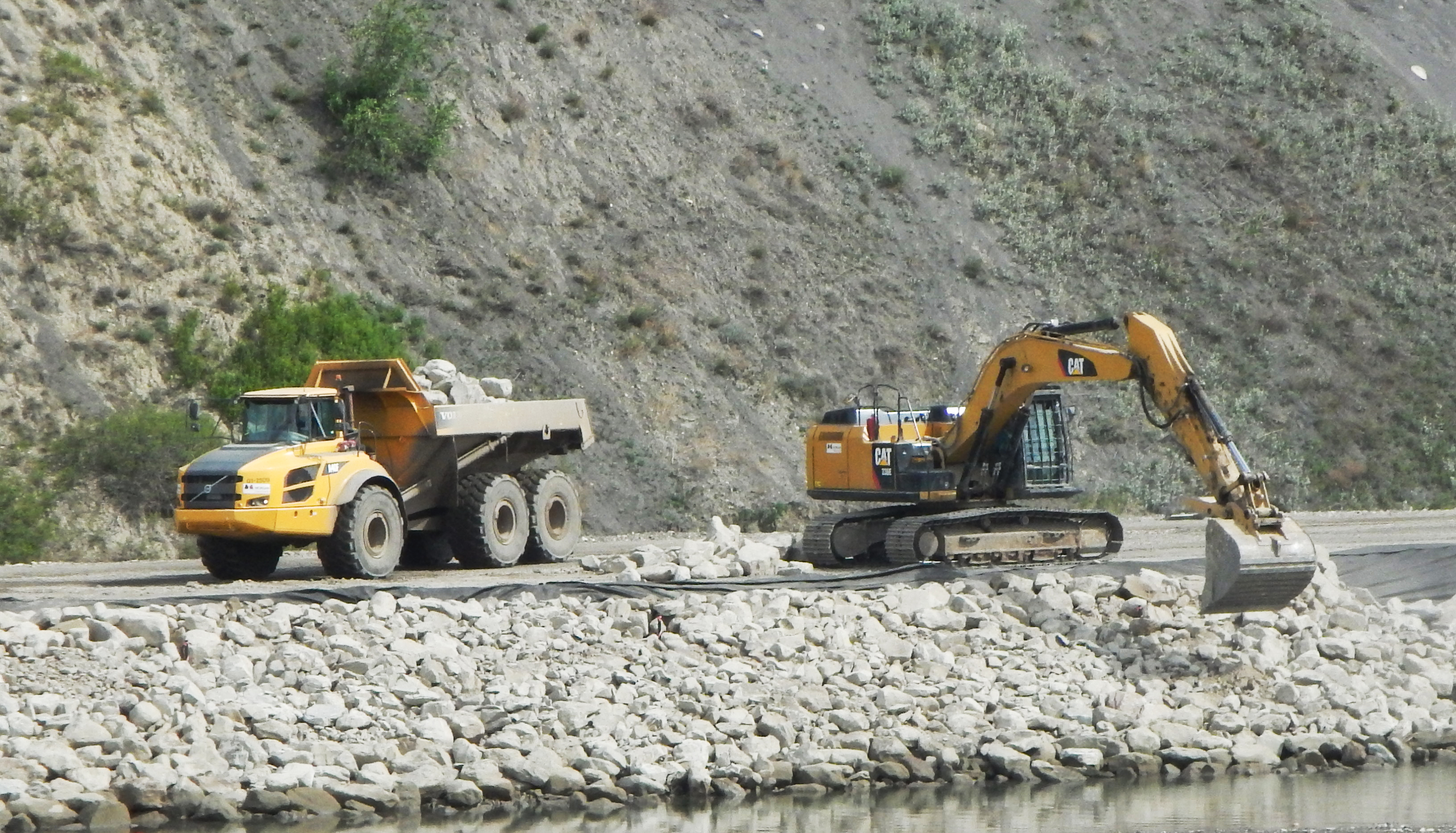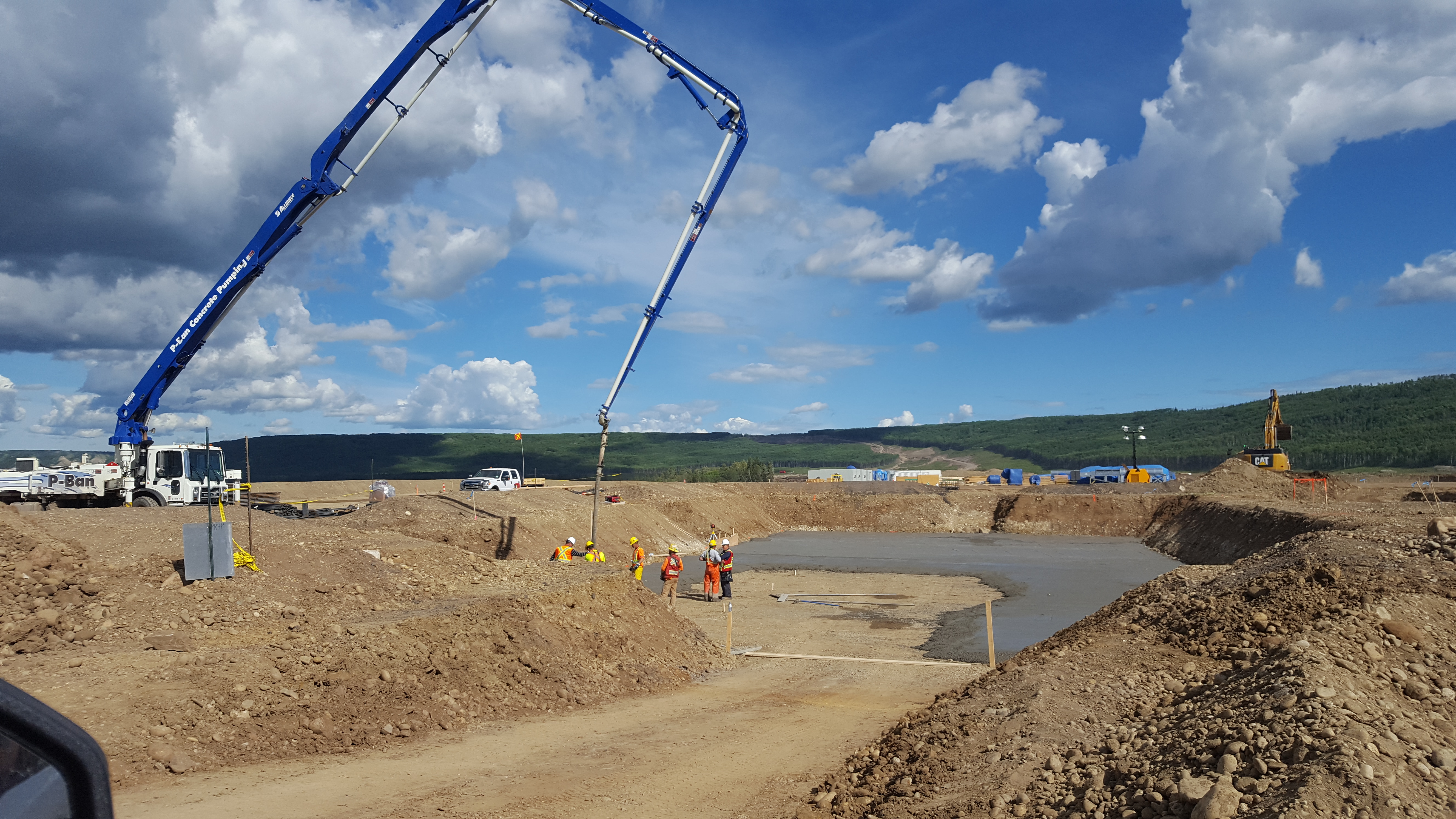 Peace River Hydro Partners continue equipment mobilization including this Putzmeister Sika 500. (July 2016)