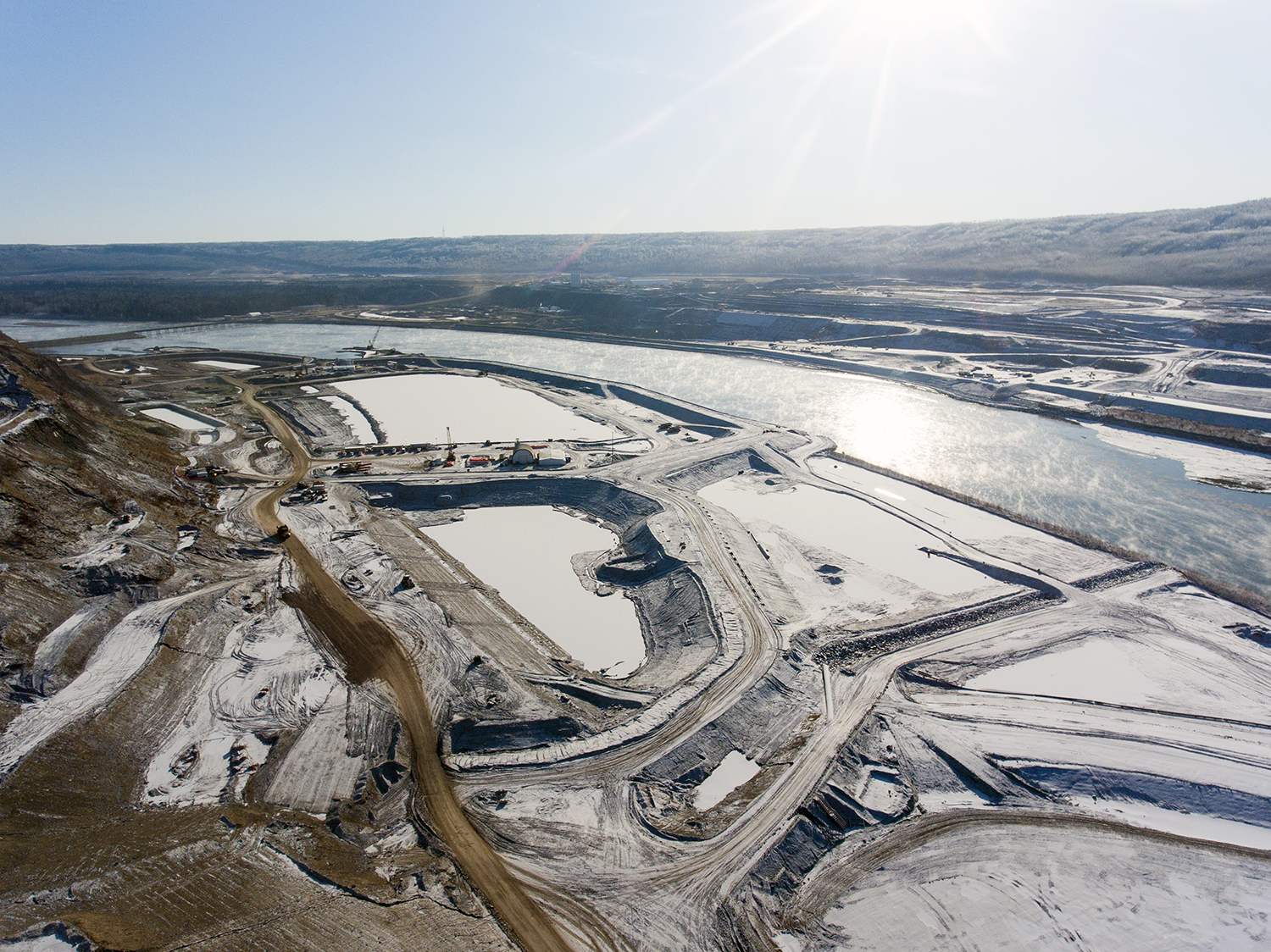 Construction of the main civil works equipment maintenance facility on the south bank. (January 2017)