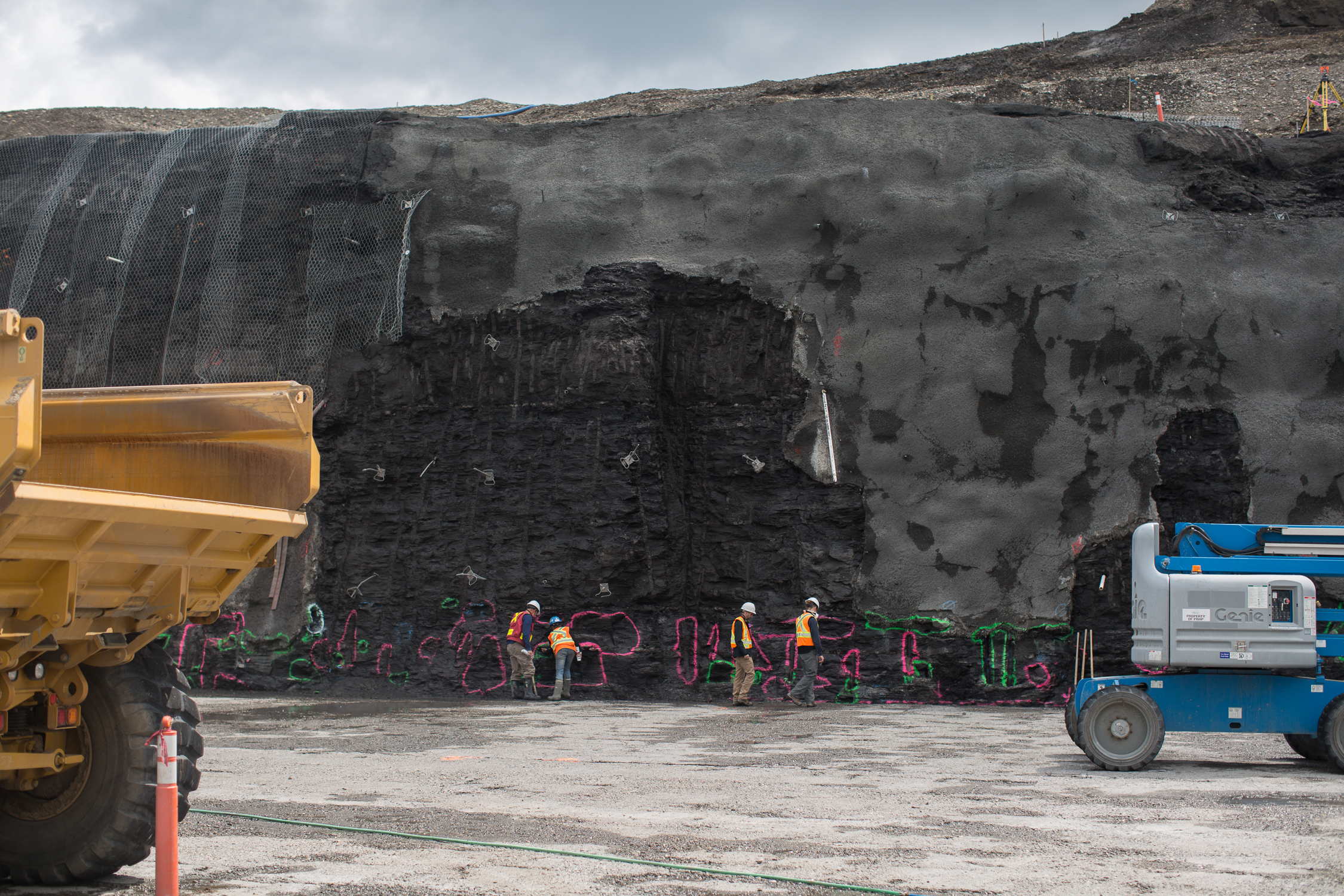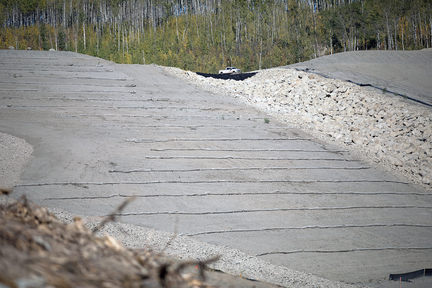 Slope stabilization above the closure channel in the L3 gully on the north bank. (September 2017)
