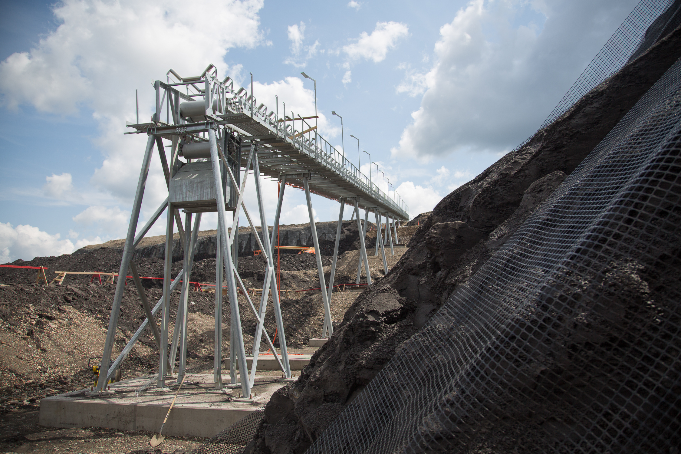 Roller compacted concrete conveyor construction at the south bank. (June 2017)