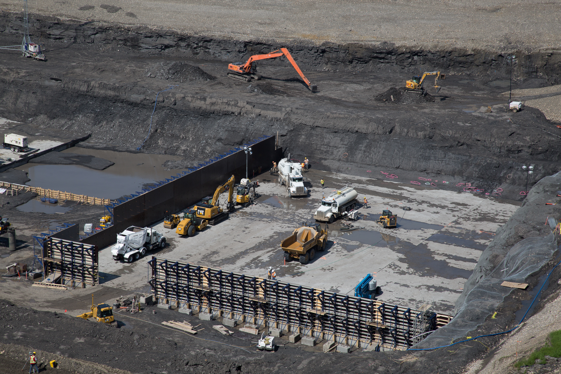 South bank cofferdam, excavation, and sediment storage area.(May 2017)