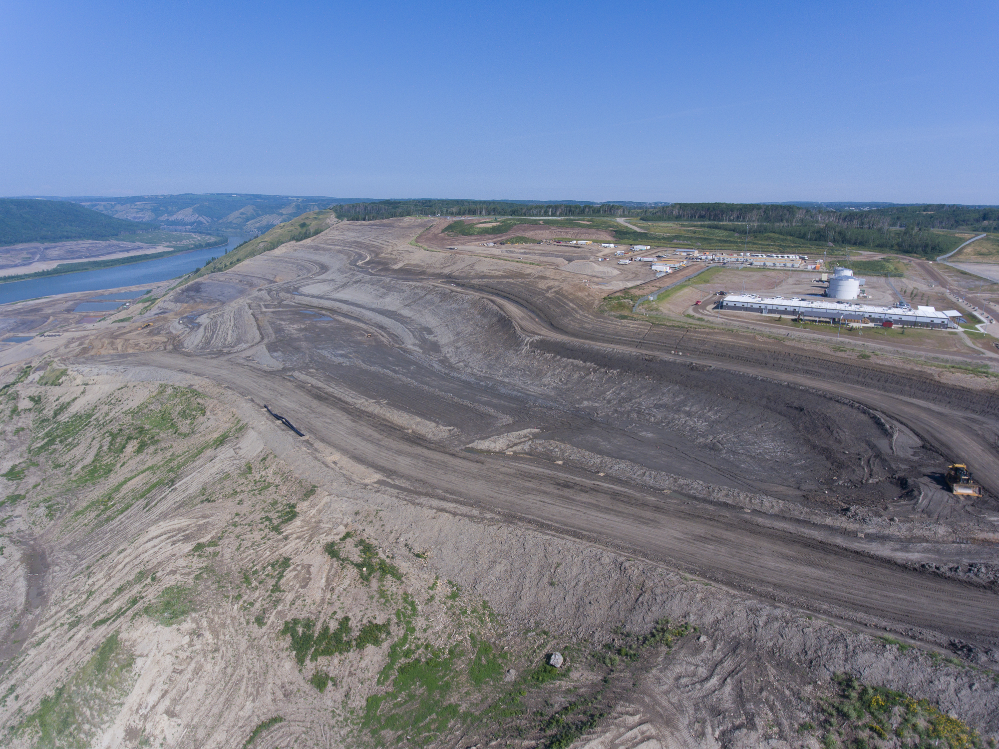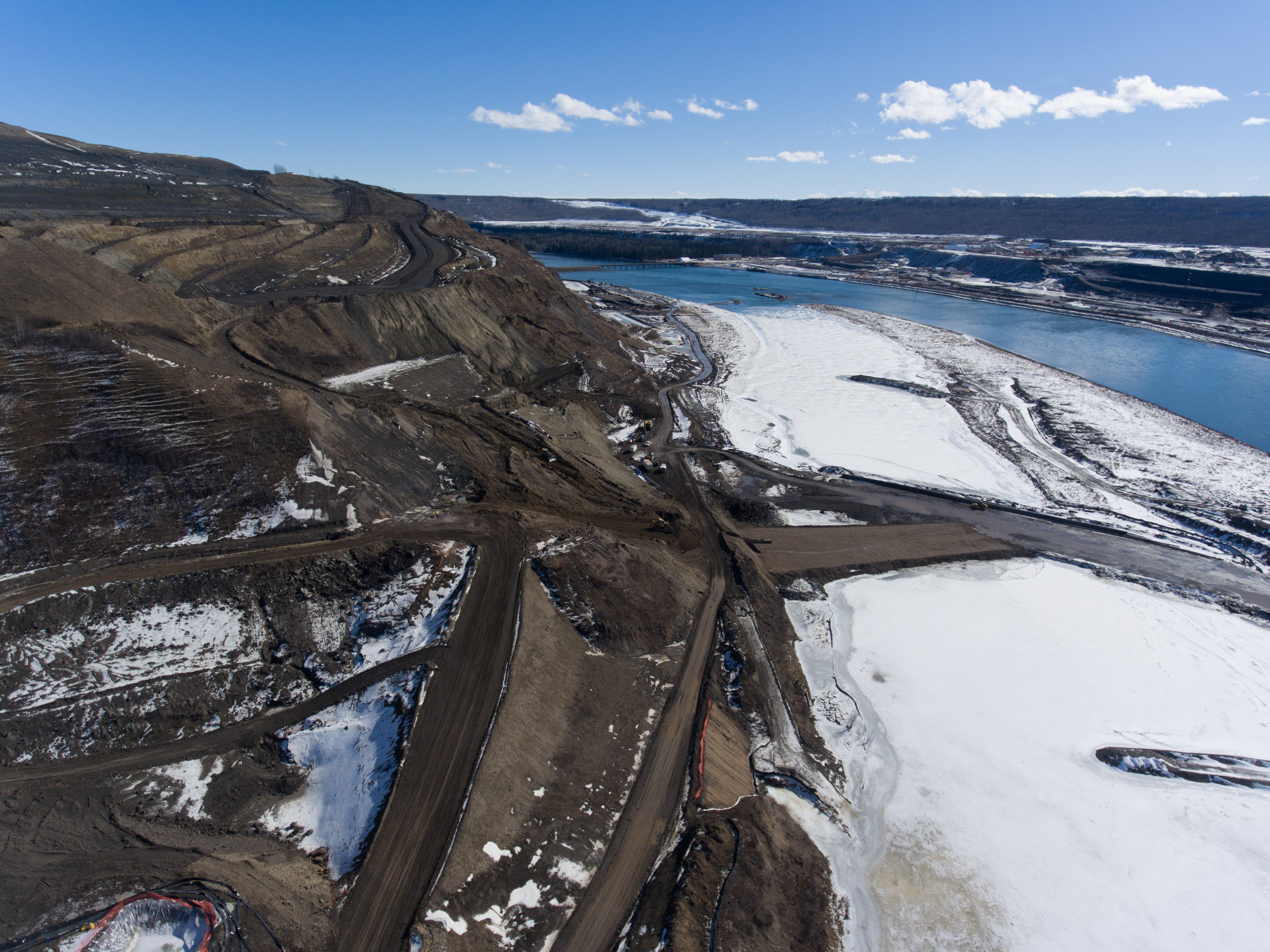 Aerial view of remediation for the tension crack on the north bank. (March 2017)
