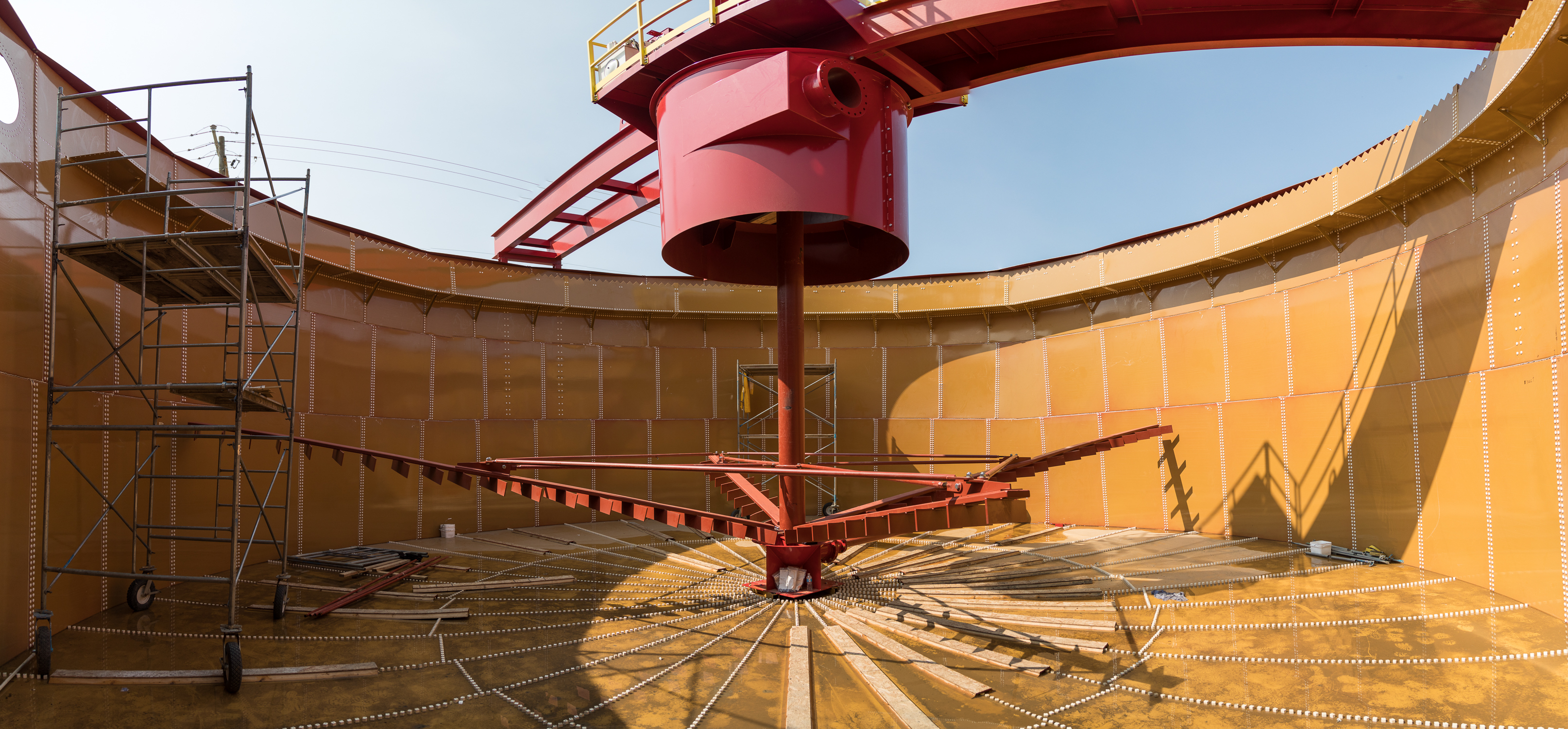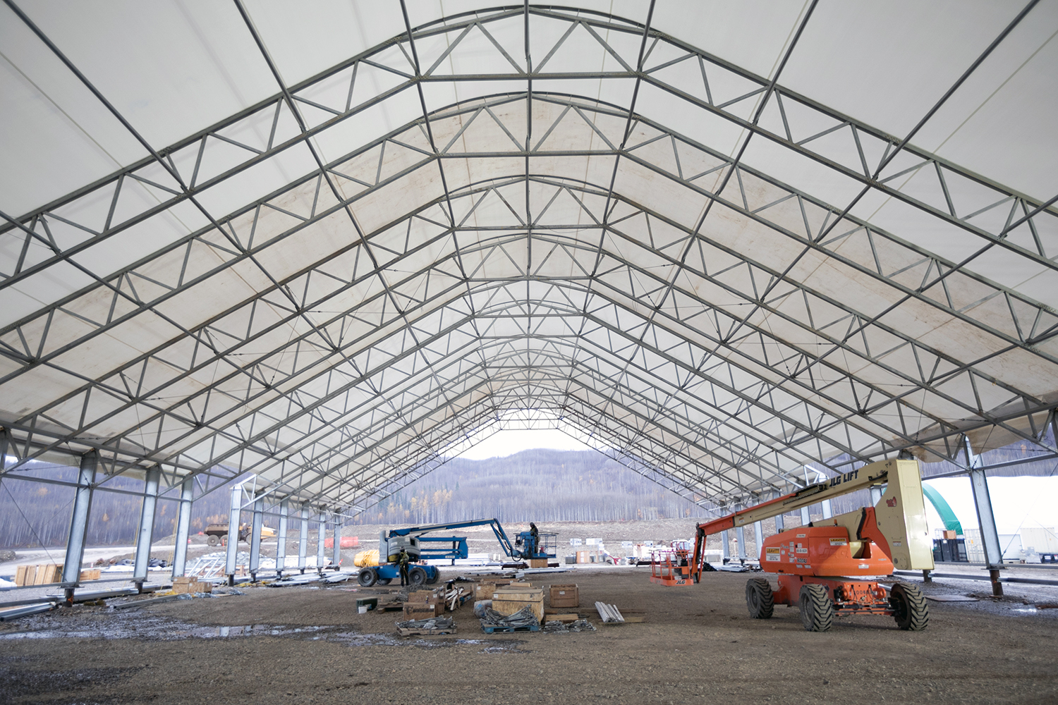 Inside the temporary on-site manufacturing facility for the turbines and generators. (June 2017)