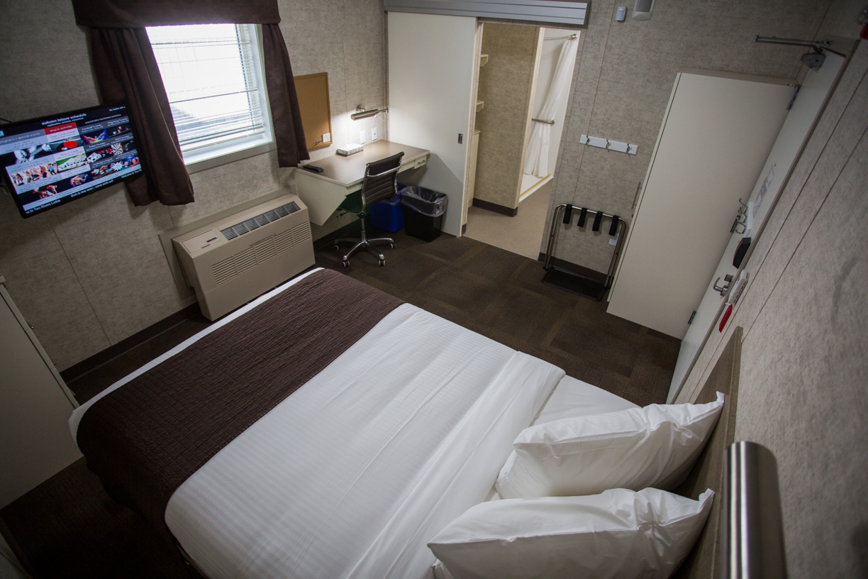 Single-occupancy bedroom with ensuite bathroom, television and Wi-Fi services. (September 2016)